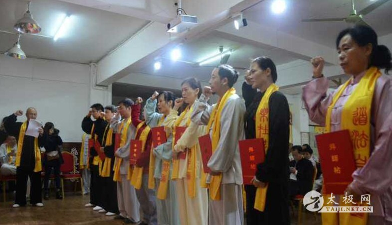 2014年11月8日上午,“陈家沟陈式太极拳传人董志鸿收徒仪式”在南宁乐道太极俱乐部隆重举行!有武协领导、武术名流河南老乡及乐道太极俱乐部的几十位学员和弟子见证了这一神圣时刻! 本次收徒仪式,九名新弟子分别来自广西、湖南、河南和四川等多地各行各业的精英人才,他们分别是:陈文萍、何建珍、姜商波、洪莉华、何莲、彭僖凌、柴树枫、刘荣林和罗刚林。 历经几百年的传承,历史证明,太极拳的发展与传播,以师承关系为最佳传承关系,没有师承的言传身教,不可能有太极拳血脉的延续和真正意义的继承发展! 师徒的传承,更多的是责任和担当!德才兼备,不负誓言,敢于担当,有责任心的弟子才是一名合格的弟子! 愿每一位弟子都能担负起传承太极拳的重任! 愿每一位弟子都能将太极拳融入自己的生命! |