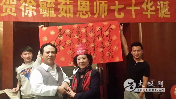 2014年11月7日,被誉为“太极王子”的陕西武术队教练吴雅楠与师姐、西安体育学院武术系徐瑛教授发起并主办的“恩师徐毓茹七十华诞庆典”在西安皇冠假日酒店举行。陕西省武术协会副主席王英杰、陕西省武术协会副秘书长、陕西省武管中心社会部部长肖关纪、陕西省武术协会顾问、著名武术家周润生、陕西省武术队教练刘海波、西安体育学院教授唐军、陕西省武术院副院长闫峰、西安赵长军武术学院执行院长武双安、中国体坛网创始人于东以及徐毓茹大师的弟子、学生,陕西省武术队现役队员等悉数到场表示祝贺。 庆典由徐毓茹大师最得意弟子、陕西武术队教练吴雅楠主持,吴雅楠率领各位师哥师姐、师弟师妹向恩师行抱拳礼,同时大家一起说“老师生日快乐!”徐毓茹大师亲自介绍了与会的各位领导和嘉宾,并对多年来关心支持陕西武术事业发展的各级领导、各界朋友表示感谢。徐毓茹在致辞中表示:“我从13岁第一次代表陕西参加全国武术大赛至今,已经在西安学习、工作生活了五十多年,陕西算得上是我的第二故乡,我热爱这片土地。今天看到这么多领导、同事、朋友以及弟子、学生来为我祝贺生日,我感到非常开心,非常幸福,也非常激动。感谢爱徒雅楠和徐瑛的组织安排,你们辛苦了!谢谢大家的光临,谢谢!!”陕西省武术协会副秘书长、陕西省武术运动管理中心社会部部长肖关纪刚刚参加完陕西省少数民族运动会就马不停蹄地赶了过来,肖部长首先代表省武管中心和省武术协会对徐毓茹老师的七十大寿表示祝贺。肖部长说:“我的恩师徐毓茹老师,从七十年代起就先后培养了以楚凤莲、张仙萍、徐瑛、陈建云、吴雅楠等为代表的一批又一批闻名全国的教练员和武术运动员,为陕西武术事业的传承与发展做出了重大贡献。” 扮演毛泽东主席的特型演员还现场进行了助兴表演,朗诵了毛主席的诗词,题赠了两幅仿毛体书法作品;爱徒韩俊霞为恩师赠送了由家父题笔的“猴寿”书画作品一幅等。参加活动的还有,陕西省武术队宁彪、花丽娜,西安交通大学教授姚明霞,西北工业大学教授陈俊梅,西安市九十一中学校长晋雅楠,西安体育学院武术教研室罗雪琳,西安市雁塔区文体局郭贵林,西安财经学院学工办主任常桂玲,陕西省人民警官培训学校教官余建敏,西安市长乐坊街道办事处主任郭贵玲等。 附著名武术家徐毓茹简介; 徐毓茹,女,1944年生,祖籍河北沧州,出身武术世家,家父是大名鼎鼎的著名武术家、全国武林百杰(之一)徐雨辰先生。徐毓茹是原陕西省武术队教练,著名武术家,中国武术八段,国家高级武术教练,国家级武术裁判,陕西省武术协会副主席,陕西省武术协会太极拳专业委员会主任,西安体育学院武术系客座教授,陕西盘根养生太极拳研究会会长。 1957年,徐毓茹第一次代表陕西赴北京参加全国武术观摩交流大会,当时只有13岁;1958年入选西安体育学院运动系,师从著名武术家马振邦先生,主修武术竞赛套路,期间得益于通备武学大师马贤达先生传授劈挂拳、翻子拳、提袍剑等,同年代表陕西第二次参加了全国武术交流大会。1959年,徐毓茹代表陕西参加第一届“全运会”,取得了太极拳第七名的好成绩。在日后的多次比赛中,徐毓茹一举荣获1963年、1974年、1977年三届全国武术锦标赛太极拳冠军;1963年全国武术锦标赛女子枪术冠军、剑术亚军、女子全能亚军;第三届全运会武术比赛太极拳亚军;1977年全国武术锦标赛传统拳、八卦掌亚军。1989年曾任全国首届太极拳培训班杨式竞赛套路教练;曾三次受国家体育总局指派赴日本培训教练员、裁判员;曾担任中国武术代表团教练赴伊拉克、科买隆、几内亚、贝宁、比绍、韩国、澳门、台湾等国家和地区进行武术表演。1995年应美国国家武术总会邀请担任美国国家武术队集训教练。曾任第十一届、十五届亚运会中国武术集训队太极拳教练,第九届世界武术锦标赛、第七届亚洲武术锦标赛、第29届奥运会特设2008北京武术比赛中国武术代表队男子太极拳教练。鉴于徐毓茹教练对中国武术事业所做出的巨大贡献,国家体育总局、中国奥委特授予她“2008北京奥运会突出贡献奖”和“体育运动荣誉奖章”。 上世纪70年代初,徐毓茹担任陕西省武术队主教练,培养了楚凤莲、张仙萍、徐瑛、陈建云等多名优秀教练员和运动员,她们曾多次在国武术比赛中荣获单项冠军。特别是2000年起,徐毓茹在担任陕西省武术队太极拳专职教练期间,培养了吴雅楠、李瑾、柴云龙、张少杰、宁彪、杨顺洪、张航、温娜等一批优秀竞技太极拳选手。其中爱徒吴雅楠获得2006年第十五届多哈亚运会武术比赛男子太极拳、太极剑全能冠军;2007年第九届世界武术锦标赛男子太极拳冠军;2008年第七届亚洲武术锦标赛男子太极拳冠军;第29届奥运会特设2008北京武术比赛男子太极拳、太极剑全能冠军;2008年全国武术套路冠军赛男子太极拳冠军;2009年十一届全运会男子太极拳、剑亚军;2010年第十六届亚运会男子太极拳、剑冠军;2013年十二届全运会男子太极拳、剑冠军。李瑾获2006年全国武术套路冠军赛女子太极拳冠军、2008年全国武术套路锦标赛女子太极拳、太极剑全能冠军。李瑾、宁彪分别获第十届全运会武术比赛女子、男子、太极拳全能第三名。柴云龙获得2004年全国武术套路冠军赛男子太极拳亚军,2008年全国武术套路锦标赛男子太