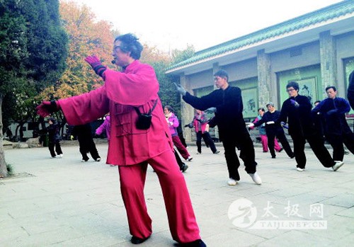 太极、形意、八卦并称中国三大内家拳,目前来看,以太极拳发展最盛。杨氏太极拳是太极拳中非常重要的一派,从杨露禅创拳距今有200多年的历史。杨氏太极拳第六代传人陈翠萍称,现在练的杨氏太极拳是上世纪30年代杨澄甫的定型拳架。 太极拳法如行云流水 11月7日,早上六点半,天刚蒙蒙亮,百花公园内一位身着红色太极服的老奶奶正在教授一群人打太极拳。他们大约有四十多人,既有二三十岁的年轻人,也有五六十岁的老人。 队伍前面教太极拳的,就是山东永年杨氏太极拳文化发展中心主任陈翠萍,她是杨氏太极拳名家扎西大师的入室弟子,杨氏太极第六代传人,这个组织在济南已有十几个杨氏太极拳辅导站,百花公园辅导站是其中的一个。 太极拳博大精深,是中国传统文化的瑰宝。太极拳在养生、健体、防身、治病等方面都有独特的功效,因此也成为中国走向世界的一张名片。 太极拳门派众多,其中杨氏太极拳就是其中非常重要的一支。杨氏太极拳从杨露禅传拳距今已近200年的历史,逐渐发展成为普及范围最广、练拳人数最多的太极拳门派。 “杨氏太极拳的特点是松静、柔和、缓慢均匀、中正安舒、舒展大方。行拳,如行云流水,绵绵不断。”陈翠萍称。 据陈翠萍介绍,她们练的杨氏八十五势太极拳套路,是杨氏第三代传人杨澄甫的定型拳架,据说还有杨氏小架,活步大架,府内派太极拳等等。而根据传承人的不同,所传的拳架式也有些不同,但是它的拳理是相通的。 杨露禅三下陈家沟学拳 杨氏太极拳源于陈氏太极拳,由杨露禅所创,并在祖孙三代人对拳法、招式的不断改革中形成了今天流行的杨氏太极拳。 杨露禅是河北永年人,从小练习少林拳。由于家境贫寒,在家以挖煤为生,间为杂粮摊助理。永年县的太和堂是河南陈姓所开,一日有人到药店寻隙闹事,动起武来,药店掌柜手只一举,对方已跌至丈外,露禅目之惊奇,遂竭诚求教。方知陈家沟陈长兴精于此技,于是长途跋涉,投拜陈家沟。 于是就有了杨露禅三下陈家沟学拳的传说。杨露禅第一次学习了六年,回家后与人比试,竟然未打过没去学拳的人;第二次又去陈家沟学了六年,回家后又与人比试,打了个平手;第三次,又跟着学了6年,前后18年学成后一举成名。 后经世人演义,如民国初年的传奇小说《金蝉盗技》、宫白羽的《偷拳》和由此创作的电影《神丐》以及2013年热播的电影《太极1》和《太极2》,都是根据杨露禅的故事虚构创作的。 杨露禅在陈家沟习武成功之后,便回到河北永年县家乡以授拳为生,后他被人推荐去北京授徒。当时清廷亲王府想请一位武术教练,觉得杨露禅可以胜任。 当官的人想见识一下这个名声在外的“杨无敌”,但看到杨露禅软绵绵的,并没有传说中的那样神勇,觉得有些夸大其词。而且王府里面的武师也多,都想着跟他切磋切磋,结果都败下阵来。 就这样,杨露禅把太极拳从河南带到北京,并在实战中不断改革,简化高难度功架,使套路更为简单。后经子孙修改,定型而成杨氏太极拳。 “特别是杨澄甫,对杨氏太极拳的传播起了巨大作用。”陈翠萍说,他秉承乃祖乃父遗风,兢兢业业,温和笃实。继北平传拳之后,南下武汉、南京,赴广州,至沪杭,桃李满天下。 陈翠萍义务授拳20年 眼前的陈翠萍老师红光满面,慈眉善目,很难想象她已经72岁高龄了,更让人吃惊的是她年轻的时候身体很不好,就是因为坚持练习太极拳把身体练好了。 陈翠萍介绍,自己从小身体非常虚弱,不爱吃饭,经常感冒,患荨麻疹,整天头晕眼花,四十三岁就进入了更年期。又患有慢性气管炎、心脏供血不足、贫血、神经衰弱等病,经常打针吃药,不能正常上班。她有次去看中医,大夫说,你的身体太弱了,必须加强锻炼,增强体质,不能光靠吃药治病。 “上世纪80年代气功风行一时,我就开始学习导引养生功、太极拳。特别是跟随了济南武术名人张梅老师,在她的细心指导和严格要求下我的技术逐渐提高,并且爱上了太极拳。” 2000年她在青岛认识了“太极名家”扎西老师,2001年开始跟随扎西老师学拳,扎西老师希望杨氏拳能够在济南扎根。 2011年,在陈翠萍多方努力下,山东永年杨氏太极拳文化发展中心成立了,现在该中心已是中国武术协会会员单位、段位考评点。 陈翠萍家人说,除了吃饭睡觉,她的生活中只剩太极拳。去年连续三个月,陈老师在家和西郊森林公园之间穿梭,每天早上六点去坐公交车,路上得两个半小时,回家就到了吃午饭的时间,下午又要去教拳。 她说,从1994年开始义务教授太极拳,20年来传授的学生有四五千人,现在门下弟子47人,会员658人。 练太极须有名师指路 现在太极拳门派众多,练习太极拳的人也越来越多,但是陈老师建议,练太极拳必须找一位好的老师,就是找一个明白的老师,否则效果不佳。 陈翠萍在《我与扎西恩师的太极缘》中写道,“可惜的是1995年张梅老师身患重病,我面临无师学拳的境地,很是苦闷。当时我很清楚,尽管自己的拳架受到了一些称赞,参赛也拿过一些奖项,但练的只是一个架子,太极拳的拳理、内涵却是知之不多。” “当时觉得突然就失去了老师,练了这么久的太极拳,还不知道它到底是什么。”陈翠萍说,自己想了解一下太极拳的奥妙,一心想拜访名师学习。 以前老师教拳时总会说,一遍不忘两遍熟,三遍四遍见功夫,年轻人没有那么多时间去练拳,但是练习太极拳贵在坚持,每天一至两次