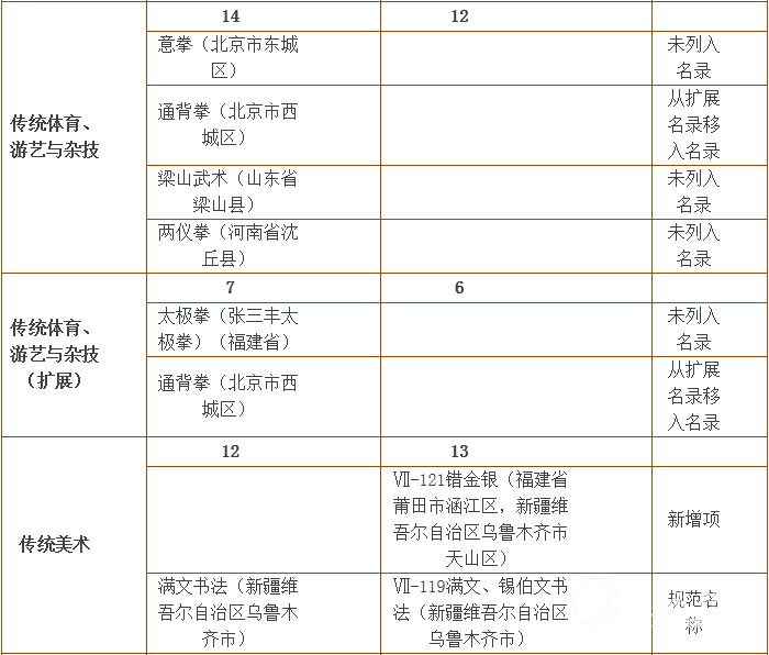 据中国政府网消息,国务院日前批准文化部确定的第四批国家级非物质文化遗产代表性项目名录(共计153项)和国家级非物质文化遗产代表性项目名录扩展项目名录(共计153项),现予公布。 按照《中华人民共和国非物质文化遗产法》的表述,将“国家级非物质文化遗产名录”名称调整为“国家级非物质文化遗产代表性项目名录”。 谁上?谁下?正式文件与文化部公示有何不同? 目录差异整理如下: 张三丰太极拳被移出国家非遗代表性项目名录 2014年7月3日,文化部对第四批国家非物质文化遗产名录进行公示,其中“传统体育、游艺与杂技(扩展)”项下的“太极拳(张三丰太极拳)(福建)”曾在太极拳界掀起轩然大波,引起陈家沟太极拳师公愤。陈正雷、陈小旺等极具名望的太极拳大师纷纷召开新闻发布会,抨击福建邵武太极拳申遗是闹剧。陈氏太极拳后人认为,围绕张三丰的身世及其与太极拳的关系存在争议,如此认定“有悖社会公认、公论”。风头浪尖上,文化部非物质文化遗产司工作人员当时即表示,已收到各方对张三丰太极拳项目的意见和质疑,将会再次核实情况,供评审复议参考。 五个月之后,第四批国家非物质文化遗产代表性项目名录正式颁布,“太极拳(张三丰太极拳)(福建)”果然被移出。申遗,应当以历史事实为依据,尊重史料证据。单纯受利益驱动捕风捉影的申遗,我们坚决抵制,否则将像强申李时珍、孙悟空的韩国一样惹人耻笑。 |