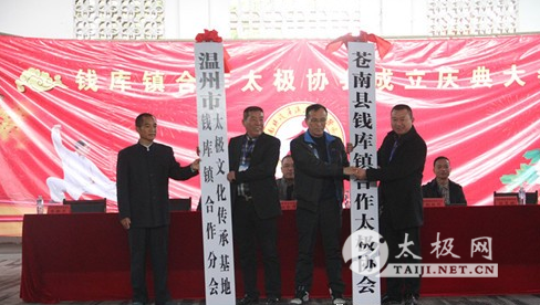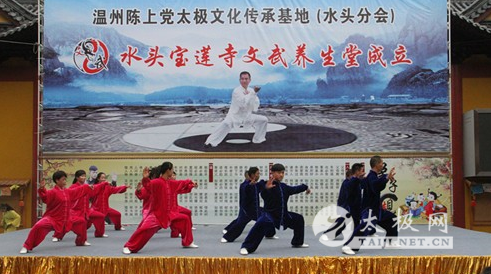 2014年12月7和8日,又两个陈式太极拳协会如雨后春笋,在温州地区破土而出。温州市陈上党的两个太极文化传承基地,相继在平阳县水头镇宝莲寺和苍南县钱库镇北岙村挂牌成立。 陈上党在宝莲寺太极拳基地庆典仪式上讲话 近年来,以陈式太极拳为主的太极拳传播热潮,在温州地区如火如荼,这把火的点燃和加油者,为温州市非物质文化遗产太极拳项目的传承人陈上党先生。 陈上党太极拳养生会所主教练徐金秀表演 教练苏雨涵 教练吴波 陈上党是我国著名太极拳传承人、国际太极拳大师王西安的弟子。多年来,他立足温州,辐射全国,积极开展太极拳的传播及国际性的交流,为温州地区以太极拳为主要内容的全民健身运动的开展和太极拳文化走向世界,做出了重要贡献。他在温州市许多县区,建立了近20个太极拳辅导站(基地),受益者达三万多人。 “铁腿”陈永辉 掌王林一 遍地的太极拳之花,使陈上党的名字在温州和太极拳紧紧地联系在一起。 7日上午,宝莲寺陈上党太极拳文化传承基地暨宝莲寺文武养生堂在平阳县水头镇宝莲寺成立。之所以选定这个地址,因为宝莲寺是当地香火旺盛的一所寺院,人气旺盛。寺院主持智法大师喜欢太极拳,看重中国太极拳传统文化和禅文化结合对人们修心养性、陶冶情操的重要作用。他和到这里修禅考察的陈上党一拍即合,在一个月的筹备时间内,报名参加基地太极拳学习的就达100多人,促成了宝莲寺文武养生堂的成立。 少儿太极拳表演 学员雷正海 苍南,是温州地区的武术之乡,太极拳文化在这里有着广泛的传播基础,在陈上党及其弟子的影响下,苍南县钱库镇热爱太极拳的人群剧增,200多名太极拳爱好者,在当地李上蛟先生的带领下,积极组织了这次钱库镇合作太极拳协会的成立庆典,使陈上党的太极拳传承在温州市又多了一个基地。 龙湾基地太极拳学员 水头镇太极拳学员表演 温州市陈上党陈式太极拳养生会所的学员和从外地赶来义助庆贺的嘉宾,分别为这两个基地的成立,献上了一台精彩的演出。 苍南县钱库镇授牌 行云流水中突发刚猛气势的陈式太极拳的拳械表演,使当地群众耳目一新,真正领略了太极拳的大气磅礴与飘逸柔美,一扫过去对太极拳“摸鱼”“舞蹈”的错误认识。一些人当场打听,要报名参加太极拳学习。 参加钱库镇表演的主要演员和嘉宾 这两次活动,更加助推了温州地区太极拳活动的开展。 |