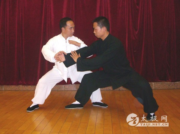 本人习练传统太极拳推手多年,时常留心体会传统太极拳论中对推手的要求,还将一些太极明师的推手经验在实践中加以印证,逐渐有了一点认识。现表述如下,以求教于同道。 1.立如平准,活似车轮 和人推手时,对方施力于我,我保持身体中正,重心不易受外力影响。这种身法上的要求,《太极十三势歌》明示为“尾闾中正神贯顶,满身轻利顶头悬”。对方来力时,我以腰为轴心,向左右转化,圈子比较小,即能使对方之力落空。若在化劲过程中身体前俯后仰,重心不稳,两脚飘浮,不仅化不掉来力,而且极易被人发出。常见人推手时,一方被对方一引或出劲前捋时,身体即向前俯,重心失去中正。如对方用采劲,即易向前跌倒,即使不立时倾跌,但被动挨打,既不能化,也不能还手,已处于败势。也有人以为自己腰劲很好,人家推不倒,所以当遇对方加力到自己身上时,身体便向后仰,重心偏于后方。若此时对方用劲在胸腹部一按或短促发力,则轻者失重败势,重者会伤及脊椎,非常危险。所以推手时,无论应敌击敌,有保持虚领顶劲、中正灵活的状态才可以左右前后回旋,保留转换的余地。 2.意在人先,后发先至 拳经中有“彼有力,我也有力,我力在先;彼无力,我亦无力,我意仍在先”之语,要求处处主动,随机应变,时时处处控制对方,使意在彼先,劲抢彼前,则发无不中。王宗岳《打手歌》曰:“彼不动,己不动;彼微动,己先动。”其中“彼不动,己不动”是听劲,是反击对方的前奏。这个过程几乎是在同时发生的。所谓手快者,也就是听劲功夫好,即对方微动,我已发觉,抢他前面发我之劲。他的劲被我截住,进退两难,正是“旧力已发,新力未生”之际,欲收回不能,欲另发劲不及,则难免处处落后,处处被动。所以,“后人发,先人至”的关键是意在人先,在于听劲。只有“意在人先”,才能保证“后发先至”,这是推手时一条很重要的规律。 3.三节齐到力增加 《太极拳论》说:“劲起于脚,主宰于腰,形于手指。”从劲力传导的三节来讲,腿脚是根节,腰身是中节,手指是梢节。人之手臂不如腿粗,腿不如腰粗。因此,手臂之力不如腿力大,腿之力不如腰力大。俗话说‚根节动,梢节发,三节齐动力增加‛,所谓三节齐动,必定意注于腰,三节劲力的上传下达主宰在腰上,根梢二节虽动也发不出整体之力,只是局部之力。推手时,用手臂之力推人,往往推不动。若用腰劲推,对方即能倾跌。推手动作,表面上力在手腕,而实际力在于腰。若肩不能松,则腰不能活,力全在于手臂,绝不能化人,亦不能发人。至于步子稳不稳,在于裆劲,即胯、腿、脚三部分的联系,而其运用之关键完全在腰。发劲时,劲起于脚跟,发于腿,由腰向前后左右带动,手指配合动作,将劲施于对方身上。知道这一点,推手时应尽量少用手臂,而应进足贴身,三节齐到,对方必立足不稳。 4,听人之劲,舍己从人 太极拳推手以懂劲为最高阶段,用什么方法才能达到懂劲的地步呢?只有平时在推手时,能善于听人之劲,这就是说,靠和对方身体接触的部分(包括指、掌、腕、肘、臂、肩等)的皮肤感觉,得知对方来劲的方向、轻重、强弱等,化掉对方之劲,向其薄弱处反击。若对方劲来,我还要想一想如何对付,是来不及的。拳经说“动急则急应,动缓则缓随”,这就全靠听劲的功夫。推手时,为了要能听人之劲,我就不能用力对抗,因为两臂用力,我就感觉不出对方的劲力!所以推手一定要轻,化掉对方来劲,使对方欲发不能,欲走不及,我才有主动权。要听人之劲,自己就不能主观,不能抢先出手攻击对方。根据客观情况,力来我化,相机进击,后发先至,实际仍是自己掌握主动权。可以说,不主观是听劲的首要条件。再强调一下“舍己从人”。拳经说“本是舍己从人,多误舍近求远……因敌变化示神奇”,都说明应根据客观情况,再作主观决定,不能一味主观。例如,我学会某一手法,想在推手中用此手法将人发出。但我向对方攻击时,对方可化可走,可格可架,大多会在我意料之外,我想好的手法在实际应用中会碰了钉子,这是主观的毛病。所以,我们在推手时,要力戒主观(舍己),要根据客观情况,作出反应(从人)。例如,对方下采我手,欲拔我脚跟。我遵循“舍己从人”的原则,用类似‚海底针‛的劲势,顺其势把手伸下去,双手配合,对方反而会被我拔起。但“舍已从人”并不是一味听人摆布,还要利用“粘连黏随,听化拿发”,达到“从人由己”的主动地位,使自己处于顺势,而对方处于被势,如此才能制人而不制于人。 5.化劲在局部,发劲在整体 太极拳推手讲究‚周身一家‛,但若处处执著于“整体”,反而可能在推手中形成弊端,所以还应该研究‚局部‛的运用。初学推手的人,遇到对方加力于己时,便全身乱动,以为这样就是走化。结果往往并未化去对方之力,自己已经跌出。这是因为初学者身体是一个整体,不能松开,不知化劲,正是‚牵一发而动全身‛之故。而初学发劲,又往往因为浑身不整,仅用两手之力,所以发不动人。初学者往往不能理解这里的矛盾。陈微明先生曾说“假若推其手,手动而肘不动;推其肘,肘动而腰不动;推其腰,腰动而腿不动;推其身,身动而腰不动;推其腰,腰动而腿不动。故能稳如泰山。若放人之时,则又由脚而腿而腰而身而肩而肘而手,连为一气,故能去如放箭。”所以我们身体什么部位被人拿住,就应该松化什么部位,其它部位不要乱动,以免影响重心。发劲时,劲起于脚,经腰向