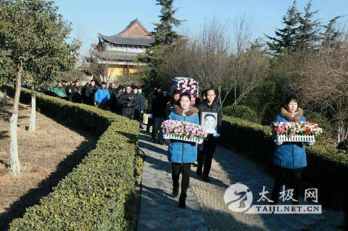 2014年12月21日上午,著名国际太极拳大师马虹先生的骨灰安葬仪式在石家庄龙凤苑举行。马虹先生的亲属和专程从新疆、吉林、香港等全国各地赶来的弟子共200多人参加了仪式。 天空祥云,龙凤呈祥 马虹先生生于1927年, 2013年12月22日逝世,享年86岁。这对于40多岁时提着暖水瓶上三楼还要休息两次的马老来说,是太极拳创造了他的生命奇迹。 这天,石家庄难得的晴空丽日,在蓝天中阳光的照射下,龙凤苑显得肃穆庄严。这是石家庄市依山傍水而建的一座公墓。青松翠柏中,一排排安静的墓碑依山排列,马虹大师的骨灰将安葬于凤山阳坡较为中间的位置。 骨灰安葬仪式前,众弟子在寒风中列队,迎接恩师的骨灰,并含泪呼唤着师父。公墓大殿前,简短而又隆重的追思祭奠仪式后,200多名弟子,在沿山而上的台阶间的三个大平台上,集体表演太极拳告慰师父,然后行跪拜大礼为师父送行。 北风呜咽,百鸟闭鸣,送葬的人群手捧傲霜抗寒的菊花,在“师父!走好!”深情而悲切的呼唤中,缓步拾阶而上,将马虹先生送到了他永久安归的福地。 或许天意,也许巧合。是日,石家庄上空,天难得的湛蓝湛蓝,仪式举行前,天空丝云不挂,直到安葬马虹先生骨灰的时刻,天空出现了片朵白云。骨灰安葬后,几朵白云在太阳旁一左一右,短时间呈现出了龙凤形状。这奇异的天象,令所有在场的人仰天惊喜,他们认为,是师父的德风感动了长天,给了今天的好天气,并在龙凤山上空呈现了龙凤呈祥的天象。 为纪念马虹先生逝世一周年,他的弟子们经过3个月的紧张准备,编辑出版的《为而不争著华章》一书,当日与大家见面。这本书登载了马老的弟子们回忆与恩师相处并深得恩诲的文章,讴歌了这位格外令人尊敬的老人及他所留下的在太极拳界有着很大启迪意义的“马虹精神”。河北省、石家庄市的有关领导及一些知名人士,为本书题词;原温县体育局局长、中国国际太极拳网总编原福全和现任温县体育局长宋明军,分别为本书作序,回忆、总结和评价了马虹先生令人敬仰的一生及其精神。 仪式结束后,在马虹先生家属举行的答谢宴会上,师母告诫众弟子,要遵循马虹先生生前的教导,“练拳练心练人格,教拳交心交朋友”,把太极拳文化传承好,造福人民。 通过参加本次仪式,记者又一次目睹了马虹先生教导出的弟子们的团结友爱的品德与高尚文明的素质,体会到了他们所弘扬传承的马虹精神。 |
