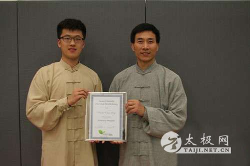 2014年12月19日,中国太极拳武术冠军于以恒应邀在联合国纽约总部向联合国工作人员举办陈氏太极拳原理及应用讲座。主办此次讲座的联合国风水协会主席Tsu-Wei Chang和联合国中文书会主席温学军等数十位嘉宾出席了活动。 陈氏太极拳第十三代传人、太极名家陈炳入室弟子于以恒自幼习练陈氏太极拳,10岁时经王成光引荐,被陈炳老师收为入室弟子,并深得陈炳喜爱。多年来刻苦习练,拳艺日益精湛,在2010年11月份江西省新余市由国家体育总局武术运动管理中心主办的2010年全国武术套路冠军赛(传统项目)中,于以恒代表山东队参赛,一举夺得规定陈式太极拳冠军! 2013年,陈炳受邀至英国牛津大学传授传统陈氏太极拳,于以恒做为助理教练一路陪同。得到了学生们的一致认可。 邀请师父担任萨塞克斯大学陈式太极拳协会名誉主席 与师父在牛津合影 讲座期间,于以恒不单对陈氏太极拳的原理及要诀做了详细的介绍,并且现场带领大家练习,令现场观众热情高涨。之后并安排了问答互动环节。此外,于以恒还为大家示范了陈式太极拳老架二路,赢得众人的掌声。 于以恒带领大家练习 个别指导 合影 此次讲座主要目的是为了介绍太极拳的基本原理及其在技击和养生方面的应用。于以恒表示,由于时代的发展和健康意识的提高,太极拳近几年在世界范围内广为普及。但是由于原理复杂且习练难度大,大众并没有真正的了解太极拳,希望此次讲座能让大家对太极拳有一个全面的了解。 于以恒自幼喜好武术,至今已有十余年的太极拳习练经验。于以恒曾多次参加中国大型太极拳武术比赛,并且获得优异成绩。2010年全国武术套路冠军赛,于以恒一举摘得桂冠,并且获得由中国国家体育总局颁发的“运动健将”称号。于以恒还在英国Sussex大学创办了陈氏太极拳协会。他表示,希望通过联合国这个平台促进陈氏太极拳在美国的普及和发展。 2014年在美国纽约联合国总太极拳讲课结束后,美国华人界最有影响力的报纸之一《侨报》报道了这个消息。 |