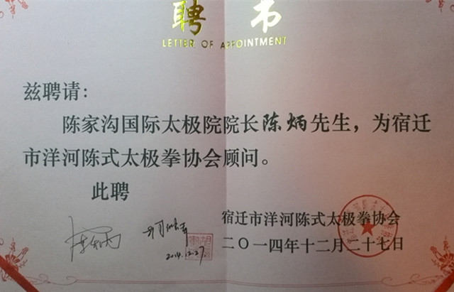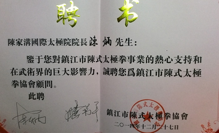 江苏省镇江市陈式太极拳协会成立典礼仪式12月27日上午9:00在市体育中心会议厅准时开始,来自南京的陈拳代表凌南平老师、上海陈式太极拳协会的朱文忠秘书长、蒋立伟副秘书长、太仓的杨成英老师、宿迁的胡继军老师以及河南陈家沟的陈炳院长前往祝贺,陈家沟国际太极院外派教练张朋和王普也一起从南京前往祝贺。 大会选举了陈氏太极拳12代传人滕菊平老师为镇江市陈式太极拳协会会长。陈炳院长同时应聘接受了该协会的“顾问”证书和宿迁洋河陈式太极拳协会会长胡继军老师的“顾问”证书。12月28日,陈炳院长将应南京市陈式太极拳协会建康分会会长凌南平老师之邀,前往南京参加活动。30日,陈炳院长应宜兴拳友之邀前往紫砂之乡做客,31日到北京会见朋友,2015年元月1号返回陈家沟。 2012年和2013年,南京、镇江、宿迁三地的陈照奎宗师再传弟子们在凌南平老师、滕菊平老师、胡继军老师的带领下,两次前往陈家沟寻根祭祖,做客陈家沟国际太极院,大家结下深厚的友谊。 |