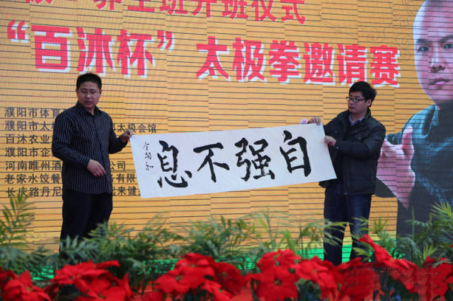2015年万象更新,首届“百沐杯”太极拳邀请赛伴随着一位位参赛选手入场的飒爽英姿拉开了帷幕!濮阳市体育局局长首先登台致辞,给所有参赛选手致以良好的祝愿,以及对所有到场人员送上新年的祝福! 裁判员代表宣誓 一代人的记忆,著名演员、武术明星,曾主演过《少林寺》、《少林小子》、《新少林寺》等多部电影的于海老师到场指导比赛。 龙都太极会馆中老年组表演 著名书法家仝相和老师现场挥毫 “自强不息”赠与王战军老师 于海老师登台鼓励运动员和新年祝福 到场名师表演 王战军老师现场表演太极拳 大家登台与名师合影 地址:河南省温县王战军太极学校 邮编:454865 电话:0391-6418888/6417777 传真:0391-6416666 网址:www.wangzhanjun.com QQ:1650774394 微信号:wangzhanjuntaiji 微博:王战军太极学校 到校路线:温县汽车站乘1路公交车即到或乘3路公交车到南孟封村口向南一公里即到。 |