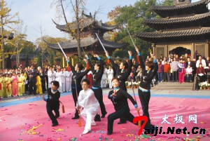 来自省内外的各路武术名家昨天欢聚西子湖畔钱王祠,同台亮相各种绝技绝活,“圣奥杯”2007杭州中华民间武术绝技展示交流观光活动,让现场的中外游客感受了强烈的视觉冲击。 昨天,在悠扬的音乐中,率先亮相的正是江南刀王、杨式太极拳第六代传人、杭州体育局局长赵荣福和百余名身着杏黄练功服的武协会员,在赵荣福的带领下演练的是杭州人自己的太极拳——太极导引功,这一幕不由得让人想起一部热映大片《满城尽带黄金甲》。 接着一曲优雅的《琵琶行》把市武协副主席杨营营带领的“韵之健”队推到了台前,他们为现场观众带来的是一套以剑为形,以气为魄,融舞蹈与武术于一体的“抒怀剑”。 正当人们纳闷武林大会怎么没有武打片时,来自桐庐、慈溪等地和市武协各分会、教练站的三百余名武林高手闪亮登场,玄阴术、狮子拳、罗汉太极、少林活拳轮番上阵,刀、枪、剑、戟、斧、钺、钩、叉交相辉映,特别是由各教练站站长和分会会长组成的全明星队表演的各种太极拳、剑、刀成为了活动中一大亮点,一时间,呐喊声、叫好声、兵器的撞击声响成了一片。 高手们的精彩表演乐坏了现场观众、游客,“过瘾!太过瘾了!”场边赞扬声、叫好声此起彼伏。不少人也坐不住了,现场报名参与大会特设的现场参与活动。可一试就发现真不容易:在“倒立行走”的比赛中,几位挑战者没走几步就已东倒西歪;“推小车”的比赛也让参赛者们洋相百出。但这丝毫不影响现场观众的参与热情,在亲友们的笑声、掌声、加油声中,选手们仿佛找回了童年的感觉,一个个玩得人仰马翻。 临近中午时分,活动圆满结束,可意犹未尽的观众仍久久不愿离去。目睹此景,赵荣福局长表示,明年的展示活动将扩大规模全新改版:无论男女老少、无论国内国外,谁有绝活都可以到钱王祠来一显身手。 |