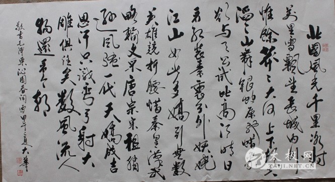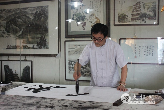 元旦前夕,浙商宇风集团邀请我国著名书画艺术家、中国太极书法第一人、中华陈氏太极拳第十一代传承人史大华来到钟祥“传播陈氏太极,弘扬翰墨精神”,记者在乡兄麻胜勇的引见下,采访了“创立太极书法,传承中华文化”的艺术大家史大华先生。 当记者亲眼见到史大华在钟祥“迎新年金都之夜”的舞台上,表演的那一招一式的太极拳法,娴熟得犹如行云流水,气吞山河。在阴阳互为之中,凸显出刚柔相济之风范,整个精气神表现得令人五体投地,羸得台下一阵阵掌声。更让人叫绝的是他挥毫的太极书法更是刚劲雄健、飘逸流畅,气势磅礴,把中国传统书法上升到了一种全新的境界,吸引了观众的眼球。史大华“文武双全”,曾被海内外华人艺术界誉为“中国书坛一绝”。 中华太极拳与中国书法都是中华民族的“国粹”,植根于中国博大精深的传统文化,它曾激励了一代代中华儿女发愤图强,拼博进取,为实现中国梦,在国际舞台上大展宏图,传递正能量。 史大华是前不久刚在北京联合大学师范学院作了一场“千年书法、翰墨魅力、中国书法与传统国学“的讲座后,又应邀专程来到了历史文化名城、帝王之乡的钟祥。他在钟祥停留了三天,参观了世界文化遗产明显陵,在莫愁湖边表演了太极书法,品尝了钟祥地域特色的盘龙菜。他说:“钟祥历史悠久,文化深厚,给我的印象太深了。明显陵、莫愁湖、盘龙菜等都是楚文化不可再生的资源,应该继续发扬光大,走向世界。” 史大华与记者同生于上世纪五十年代,看上去他比实际年龄显得年轻许多。他习惯戴着一幅眼镜,举手投足,浑身透着一股书卷气。他说话抑扬顿挫,条理清晰,思维敏捷,给人印象是一位颇有学问的文化人。当他运用太极功法挥毫书写中国书法时,才真正让人领悟到了他那深厚的中华文化功底。 据与史大华交往了二十多年的麻胜勇介绍,史大华是一个有毅力、肯钻研的艺术家。他在中华太极拳和中国书画艺术方面所取得的成就早已享誉海内外。作为中国陈家沟陈氏太极拳第十一代传承人,他是中国温县陈氏太极拳研究院研究员、中国陈家沟陈氏太极拳高级拳师、中国陈家沟陈氏太极拳形象大使。如今,他拥有诸多头衔——文化部中国国际书画艺术研究会员、中国国家书法家协会副主席、中国国家美术家协会常务理事、中国当代名人书画院常务副院长、中国书画专刊艺术顾问、世界书画艺术家联合会执行主席、中国书画艺术家协会执行主席、中国太极缘书画院院长。 史大华从小生长在河南太极拳之乡,受中华太极拳文化的影响颇深。而今天的河南省温县陈家沟曾是中华太极拳的发祥地。据史料记载,明朝洪武年间,山西泽州人陈卜迁至河南省温县境内的一座小山村,因村中有一条南北走向的深沟,随陈氏人丁繁衍,该村因此更名为“陈家沟”。始祖陈卜,耕读之余,而以阴阳开合运转周身者教于孙以消化饮食之法,理根太极,故名太极拳。 孩提时代,史大华在陈氏前辈们的熏陶下开始习武,学打太极拳,后拜太极大师第十代传承人陈长虹为师,系统地掌握了太极推手拳法。他每天闻鸡起舞,习武太极拳,五十多年来从未间断。青少年时代,史大华在练太极拳的同时极其崇尚中华文明的“国粹”艺术,尤其钟情书画艺术,长年刻苦坚持临摹古今名人碑帖字画。他习书作画,曾得到中国书画界多位大师的悉心指导。史大华精心研习中国书法绘画40余载,临摹过现代绘画名家齐白石画的虾,临帖过王羲之、颜真卿、柳公权等历代书法名家的字体。他博采众长,兼收并蓄,灵活运用,把太极拳法与中国书法相融合,形成了自己独特的“史书体”,成为中华太极书法的第一人。他尤精画虾,擅长楷书、隶书、行书、篆书,其书法点画俊秀,方园浑然、疏密相间,朴实厚重,气势严谨,飘逸流畅,行笔自然。 史大华深知中国书画与武术为中华民族的“国粹”,并将两大“国粹”文化融会贯通、相辅相成。他发挥自己的天赋与灵气,经过自己不懈的努力,终于独创出了具有爱国情结和特殊韵味的太极书法。史大华常说,中国的传统文化强调“柔生刚”,中国武术通过运气方能产生千钧的力量,从而打出的拳头很有力量,才能克敌制胜。而中国书画通过运用兽毛做出柔软的笔头,方能够将书画者的气力很好地表现出来。写出的字,画出的画,方能力透纸背,给人一种巨大视觉冲击力。史大华的成功尝试证明,中国书画与武术的绝妙融合,体现了中国的传统文化之博大精深,所产生出来的艺术魅力足以称誉世界。 史大华运用太极拳法习书作画,兼收古代名家之法,追求随意自然,又融入自己的审美情趣,赋予所擅书绘画的作品一个新视觉,一个新生命。他不图名利,乐善好施,热情好客,为人大度,随心所作皆成佳品,深受书画艺术界同仁称道。多幅太极书法及绘画作品传播海外,先后被英国,美国,加拿大,马来西亚,日本、韩国、新加坡等国家和地区的多家机构、各美术馆、博物馆及知名人士珍藏。 当记者问到史大华为何能把太极拳与中国书法结合的炉火纯青时,他欣然地回答:书法早于太极拳问世中华,它是汉字的书写艺术。汉字在漫长的演变发展的历史长河中,它屹立于世界艺术之林。一方面起着思想交流、文化继承等重要的社会作用,另一方面它本身又形成了一种独特的造型艺术。虽然书法艺术的自觉化至东汉末年才发生,但书法艺术当与