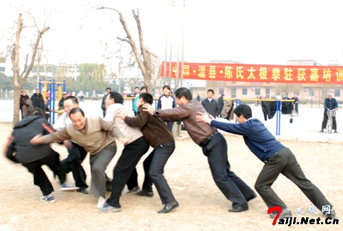 展示太极拳的掤劲和化劲功夫——定步众人推不倒