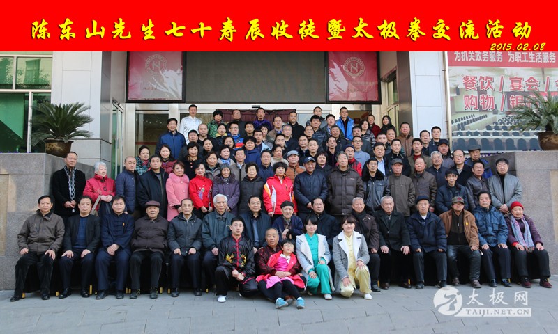 一身正气冲霄汉,萱草长春庆古稀 陈东山先生七十寿辰收徒暨太极拳交流 【太极网西安专稿】2015年2月8日,是一个特别的日子,陈式太极拳第十一代传承人——陈东山老先生在这一天迎来了他的70大寿。七十年的悠悠岁月是一首感人的诗篇,七十年的风风雨雨是一幅多彩的画倦,七十年的历历往事感人肺腑,七十年的沧海桑田同样地动天惊。陕西各界知名人士130多名参加会议。原毛泽东主席的秘书、91岁高龄的髙智先生,原陕西省副省长潘连生等领导出席活动并讲话。 潘连生原副省长讲,“陈东山先生和我是同龄,又在一起工作几十年。虽然岗位不同,但我一直很尊重他。他在工作上兢兢业业,一丝不苟。同时作为陈式太极拳的正宗传人,几十年来,他一直利用业余时间推广陈式太极拳。退休后,陈东山先生更是将陈式太极拳普及发展作为己任,先后著书立说多本,奔赴全国各地传拳授艺,当属楷模”。 髙智老先生对陈东山先生长期致力于弘扬陈式太极拳高度肯定,并对陈式太极拳发展给予了厚望。 陈东山,字泰峰,1945年出生于太极拳世家,河南省温县陈家沟人,陈氏十九世,太极拳十一代传承人。系一代宗师、《陈氏太极拳图说》作者陈鑫之曾孙、“编辑者”陈椿元之孙、“参订者”陈绍栋之次子。自幼随父兄习拳,受家传绝学之熏陶,立志精研家传绝学,对其拳理、拳法及发展史有独到的见解,并积极应对近代来自各方面的假托附会之说。现任陕西省武协委员、焦作市太极攀研究会理事、温县太极拳研究发展中心顾问、陈鑫太极拳法研究推广中心顾问、尚武太极攀馆名誉馆长、西安陈氏太极拳辅导站名誉站长,陈鑫太极拳研究推广中心北京分部负责人。陈老先生一生热衷于公益事业,致力于陈氏太极拳的发展与传播。为陈式太极拳的传承发展做出了巨大贡献。 先生自幼学习陈式太极拳,但从小由于身体比较虚弱,得了一种蛔虫病,练拳往往是力不从心。12岁那年,从一位80多岁的老人口中得知了一个治疗蛔虫病的偏方,用一种叫苦柬树的树根熬水喝,一下根治了先生的蛔虫病。有了好的身体,先生练拳更是如鱼得水。也就是这位老人,不止医术高明,还擅长算卦,算出先生必将是大器晚成。先生原名陈西海,其父亲陈绍栋,与伯父陈金鳌商议,决定给先生改名为陈东山,意为东山再起,重振家业。 1963年先生应征入伍,1970年转业于陕西省政府办公厅机关工作。在此工作期间,先生结识了陕西省政府副省长孙作宾,孙作宾恰好主管体育,得知先生情况后特别重视,于是建议先生在西安组织一个武馆,发扬陈式太极拳。有了领导的支持,先生开始召集在西安的陈家沟太极拳师,开始了筹备工作。1984年,西安萃华武术馆(文化大革命后中国最早成立的太极拳馆),在先生的一手操办下正式挂牌成立。同时成立的还有西安陈式太极拳辅导站。那时先生年惑四十不到,年纪尚轻,于是推选了陈立清先生为萃华武术馆馆长。陈玉琦为西安陈式太极拳辅导站站长。而先生则作为西安萃华武术馆理事、副馆长。 先生的曾祖父陈鑫先生是一位德高望重的太极拳大师,1933年出版了《陈氏太极拳图说》一书。1988年,先生发现此书被上海某书店侵权,面对家传绝学被人侵犯,先生力争一定要讨回公道,维护家族权益。于是先生开始研究知识产权法、著作法等相关法律,不断奔波于各个机关、法院,往返于河南、西安、上海几大城市。由始至终,先生没有聘请律师,一个人,单枪匹马,历时四年时间,经过四次审议,最终赢得了胜利,上海方面也做出了赔偿和道歉。但这些都不是最重要的,重要的是先生维护了家族的权益,让已故的先祖得到了尊重。 1992年,温县首次召开太极拳年会,陈东山先生提出建议修复陈氏祖祠,恢复太极拳历史文化遗产。口号打响了,却无人实施行动。由于文物很早以前就被破坏掉了,而真正见过其原貌的人又少之又少,再不修复,恐怕这悠久的太极拳历史文化,从此就断了。想到这里,先生决定自掏腰包,修复文物。 值得一提的是,当时陈家历代祖先的墓碑都在黄河滩底,被用来作基石,其中一块墓碑被一位村民看见,告诉了先生,那时候正值下午两点多,先生找来吊车,在黄河滩上开始了挖碑工作,但是由于墓碑埋得太深,距离太远,吊车用的钢丝绳被吊断了好几次,都没能把碑挖上来,几个小时过去了。地里务农的农民也逐渐开始回家,路过黄河滩,都纷纷停下来围观,看着挖掘工作一次又一次的失败,周围的人也倍感着急。吊车司机告诉先生,真的是没办法了,挖不上来。先生脸上露出了些许无奈,对司机说到:“要不这样,咱把车修好,再试一次,如果还不行,咱才放弃”。车修好了,大家都期待着这最后一次。只见先生跪地黄河滩,一个,两个,三个响头之后,双手合并,嘴里念到“历代祖先,我是真心诚意的想带你们回家啊,如果你们真的不愿跟我回家,那我可以让你们留在这里,但如果愿意跟我回去,就请你们跟我走吧!”吊车启动,只听见一声巨响,一块墓碑破沙而出,周围的群众都欢呼不已,先生更是无比激动。紧接着,两块、三块......共挖出墓碑九块。先生将这九块墓碑运回家中,连夜找来工匠对其进行修复。 此后,先生为太极拳始祖陈王廷、清“武节将军”陈仲甡、陈季甡等历代宗师复制画像20余帧,为陈王廷、陈有本、武节将军、陈鑫等修建功德碑、复修墓碑16通,编撰历史名人碑文、简介23份。1998年,恰