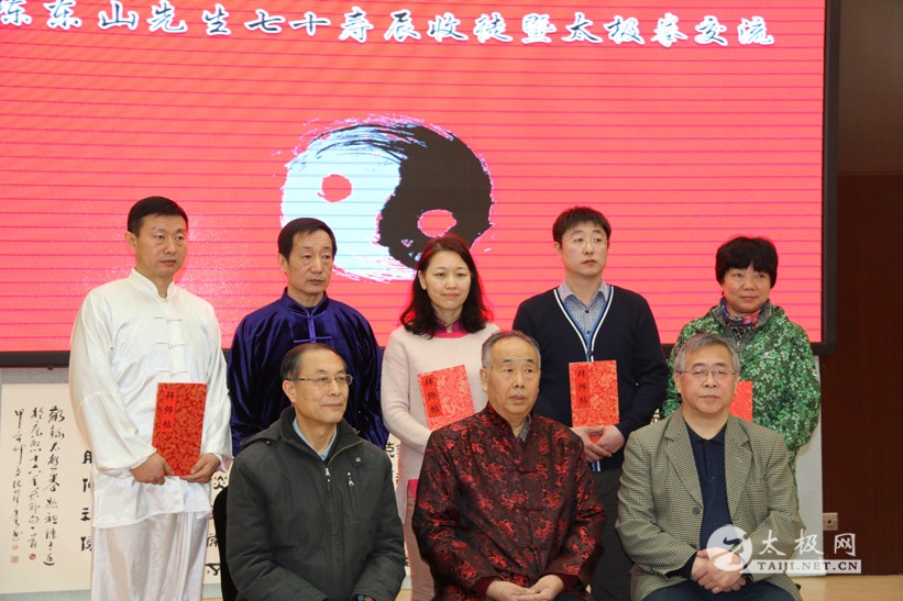 自上世纪90年代初,先生先后在中华武术杂志,太极拳年会上发表《论关于太极拳源流新说法》、《陈氏太极拳图说与陈鑫》、《太极拳发展的哲学思考》、《陈王廷与中国太极拳》、《太极拳焦点辩证考》、《杜元化应属陈氏太极拳再传弟子》、《略谈陈氏太极拳小架之特点》等10多篇正本清源的论文。在深入研究和论证太极拳源流的基础上,以确凿的史实为论据,对有关假托附会之说作了有力的辩驳。其中多篇论文分别获一、二等奖。1996年被国际太极拳年会授予“名师”称号。2010年率队参加陕西省老年武术邀请赛,获太极拳传统套路金奖。 2005年先生结束了在陕西省政府办公厅机关的工作,退休后的先生却一直不忘对陈式太极拳传承和发展,其年对陈鑫原著《陈氏太极拳图说》、《太极拳图画讲义》进行断句、点校出版发行。2008年在西安组织并举办纪念陈鑫诞辰160周年大型纪念活动,同时出版发行《陈氏太极拳小架发展与传承》画册。2010年与侄儿向武共同撰写《陈鑫太极拳法图解》,为太极拳爱好者研习其家传绝学提供方便。 2007年至今,先生先后在西安、北京、北戴河、国防大学、军事科学院、总参疗养院、指挥学院等地义务传授家传绝学,并在陈家沟开设陈家沟太极拳精修学院,为广大的太极拳爱好者传授太极拳技艺,受到武林同道的极高赞赏。 著名书法家毛主席秘书高智老先生、石宪章、胡明军、宋厚晨、张忠和、王景耀、中央文史馆刘松林以及田东海、赵栋梁、张荣等曾先后为先生弘扬太极文化题词。其中“清正为本,一身正气,两袖清风”用以歌颂先生一生刚正不阿的品质,以及先生为保护传承太极拳文化所做出的杰出贡献。 别看先生已年过七十,但却壮志不减,依就不忘父亲当年对他的教诲,重振家业。现在,先生又在着手修建陈鑫父祖三代故居。先生说,他要让陈式太极拳文化像中国的航空母舰一样,走的更远,让太极拳这个大旗飘得更高。 陈东山先生和新收弟子合影 |