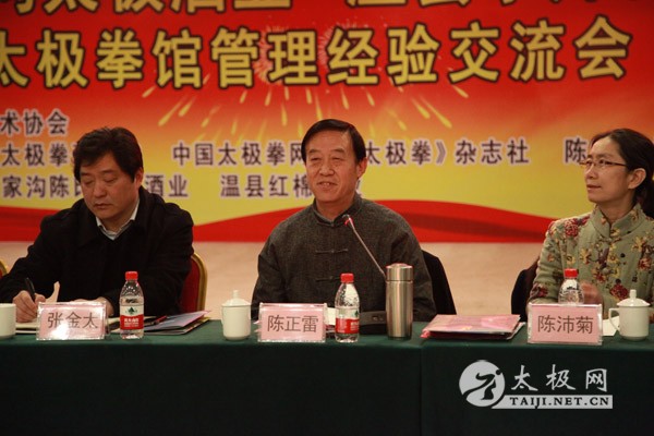 陈式太极拳著名传承人、河南省武术运动管理中心副主任陈沛菊强调到:“目前太极拳的发展要严格练习武术基本功和培养大量的人才特别是优秀传承人的培养。优秀传承人的标准是全面性人才。”