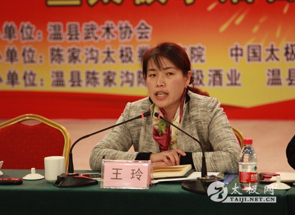 温县人民政府代县长王玲,来到温县工作不到一个月,不仅听取了陈家沟文化产业工作汇报,节前看望了老拳师,而且今天在百忙之中又参加新春联谊会。她在会上对太极拳提出了自己的看法和新的希望:“我认为太极产业的发展不是波浪型的而是螺旋式上升的发展趋势,太极拳是一种文化拳,希望它逐渐变成一种高、大、尚的运动。‘高’是指太极拳高雅;‘大’是指受益群越来越大众; ‘尚’是指太极拳运动跟上时代的步伐,引领时代进步。”