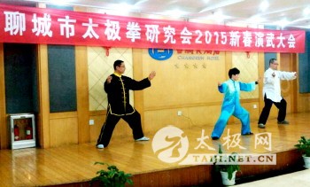 聊城市太极拳研究会会长陈玉忠拳照 路全芬(中)在演武大会现场 3月2日,聊城市太极拳研究会演武大会聊城召开,演武大会由聊城市太极拳研究会主办,聊城市摔跤协会主席张根生及来自河南、泰安及聊城各县市的各路太极拳家、武术界人士参会,除了交流展示拳脚,聊城市太极拳研究会会长陈玉忠、路全芬等同武术界人士就太极拳的普及和全民健身推广做了探讨。 当日,有洪传陈氏太极拳、杨氏太极等拳家到场,还有很多热爱太极拳文化的市民前来学习观摩。演武大会上,各路太极拳家及太极拳的学习者展示了拳术,很多市民对太极拳的魅力着迷。对此,陈玉忠表示,太极拳研究会自成立以来就带动了很多市民踏上了太极修行之路,去年更是为聊城市武警支队的队员进行培训,并取得了很好的效果。陈玉忠希望通过演武大会能吸引更多的市民和学生参与到其中来,修身养性的同时更能感悟中国传统的哲学文化。 |