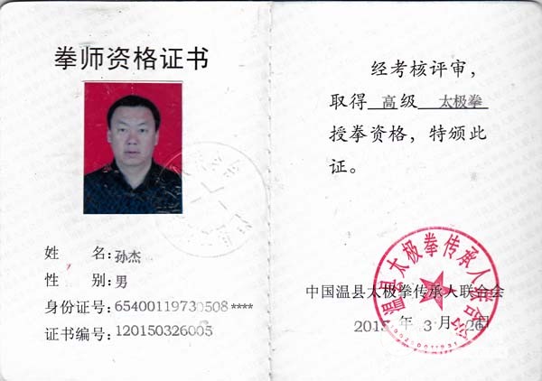 2006年本人跟随奎屯市武术协会副秘书长,太极协会副主席刘兴旺师傅学习传统陈氏太极拳,剑等,并拜师,现已是中华传统陈氏太极拳正宗第十三代传承人。