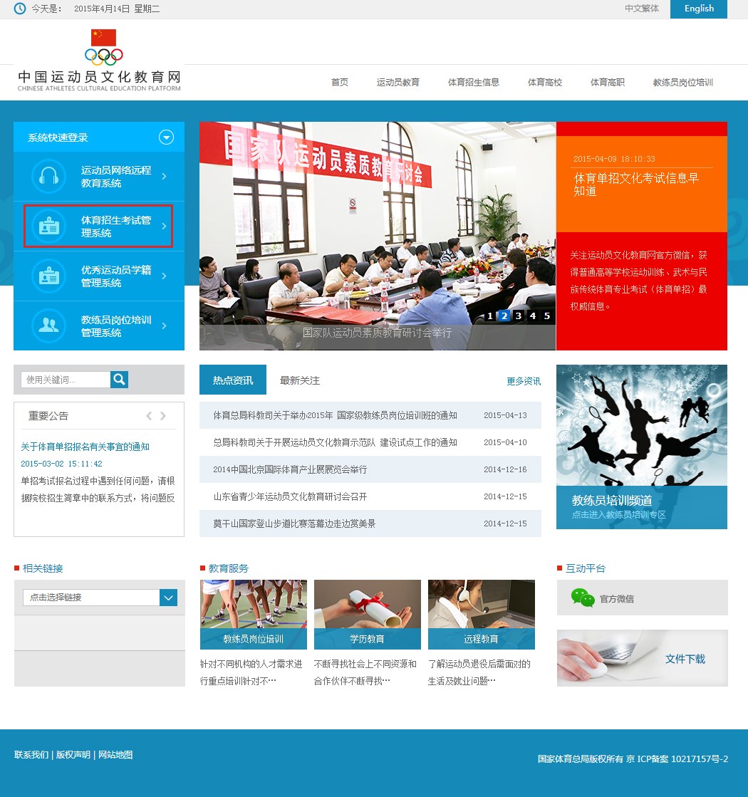 | 第一,如何打印准考证? 4月15-24日登录中国运动员文化教育网的体育招生管理系统打印文化考试准考证。