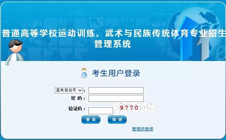 第四,考什么? 考试科目:语文、数学、政治、英语;考试分值:每科150分,总分600分。 第五,如何查询成绩?![]() 5月18日登录中国运动员文化教育网的体育招生考试管理系统查询文化考试成绩。