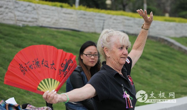 凯西喜欢太极拳已有15年了,一次偶然的机会,看到朋友打中国太极,她觉得太美了,就跟着练。练了3年,凯西在家乡做起了太极教练,免费教身边的朋友打太极拳。 现在,凯西每天带着20来人打太极拳,这些人年龄从50岁到80岁,她们每天要练4-6个小时。太极成了凯西和朋友们生活中不能缺少的美丽运动。