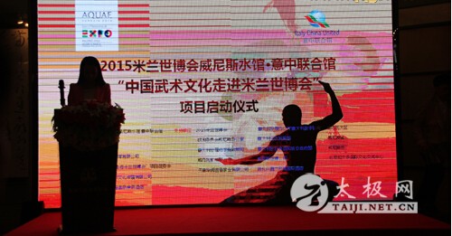 | 4月20日,2015年米兰世博会威尼斯水馆·意中联合馆“中国武术走进米兰世博会”项目启动仪式在北京民族文化宫盛大开幕。 本活动是意中文化交流的重要组成部分,也是中国武术走出国门、走向世博的绝佳契机。