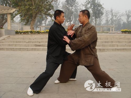 在太极拳打手对抗中,一切着法都离不开“力”与“巧”。力、巧虽然是对立的,实则互相依存,不能孤立。力体现出素质,巧是方法。素质是天然的,虽然通过习拳练功而有所增强。但因不同的体格条件,必然有不同的极限;方法是通过习拳学来的。只要善于利用科学的方法进行练习,就能出现不同的奇迹。武术界早就流传两句话:“一力降十会”,“一巧破千斤”。这两种说法,应当承认都是对的。但,我们也应当辩证地来进行分析。所谓“一力降十会”者,不一定没有巧的方法;所谓“一巧破千斤”者,也不可能没有力的配合,大概说来,力与巧体现在每个人身上,总不免因体质和学力不同,而各有异。力大能胜巧而力小者、巧精者又能胜力大而拙者;如果双方力巧相等,则对抗必成和局。太极拳打手主张四两拨千斤,就是用科学的巧来胜力的。但仍然离不开力的作用。所谓“四两”不过言其用力之少,并不是仅有四两的力。 从目前来讲,习太极拳者,从推手到散手的训练中总以柔当先,甚至某些人在所著的书刊里要求“一柔到底”。但在谈到推手,散手时,却把各种着法都说成为“用力”如何。实际上从开展推手到现在的推手竞赛上,常见有些运动员只多用力顶抗,而缺乏技巧训练;如牛羊之相抵,不见四两拨千斤的奥妙,与太极拳以柔克刚之理相悖。究竞什么原因致使出现这种矛盾而不合乎太极拳法的现象呢? 根据我学练陈氏太极拳和推手散手四十余年的体会,认为矛盾的原因是多方面的。首先是太极拳的“理”和行功的“法”过于高深复杂,不易为心粗气浮者所能理解和掌握。又因,学者教者认识的不同。没有经过实践的验证,出现了误导的现象造成的。我通过反复地学习诸前辈的著作,验证了理与法的关系,认为:王宗岳所著的《太极拳论》对拳理拳法及练功、技击成就等,讲的最为扼要深刻。再就是陈氏十六世家传拳家陈鑫所著《陈氏太极拳图说》,讲的极为详尽;他不是单纯讲拳的理法,而且详细讲了推手、散手中的“成手”和“病手”,更可贵之处则是他明确指出:“太极拳缠法也”,并说明缠法是螺旋形运动,这就为我们研究太极拳推手、散手者亮出了指路明灯。 但是,王宗岳、陈鑫先生对太极拳理法只讲了原则,如《太极拳论》说的显非力胜、快何能为,分别自然之能的力与巧,提出“学力”和“默识揣摩”及“用力之久”、“愈练愈精”的学习方法,在讲力与巧的结合方法,文中提出:“双重之病”,说“欲避此病”,须知阴阳,阴不离阳,阳不离阴,阴阳相济,方为懂劲。我们虽然能理解阴阳是代表力与巧的虚实、刚柔等,但仍难体会怎样像阴阳互不分离而达到相济。怎样做到这个要求,为什么做到这样,就能做到避免双重之病?究竟什么是双重,双重的“双”到底在哪里呢?这个问题先师洪均生先生讲的最为明确。他说:“左重则左虚,右重则右杳”。句中左重、右重是讲手部的运行,左虚、右杳则是讲的步法的配合。也就是左手实则左足虚,右手实则右足虚;手足的虚实配合得当才能避免双重。前面双重(前手前足同实),必出顶劲;后面双重(后手后足同实),又必出丢劲。欲做到不犯双重、不丢不顶,全在周身上下相随的螺旋运转,变化的方向及时间恰到好处,无过不及。通过洪师的讲解和实践验证,我又进一步理解陈鑫先生所说的陈氏太极拳着法中讲的“攻人如同上螺丝钉那样,不能硬拔出去”这句话,从实践体会到螺丝钉的进退的螺旋劲作用,是力、巧结合的一种体现。螺丝钉的纹有凸、有凹,纹是随曲就伸的,纹虽是弧线而钉却是直的硬的,凹处便为阴,为虚,凸处便为阳,为实,当螺丝钉向左旋转时,后方的上边必然逐渐向上转动变为向左,为收、为虚,左方下边又必然逐渐同时向下转动,而向右上转,为实、为发,方向虽然对立,时间却是统一的。我又推想到枪弹出膛和钻探机的作用,它们不但利用螺旋运动的形式,而且结合着力的大小和速度。螺旋的旋转固然属于技巧,旋转的迅速更是有赖于力的加强。古人论射箭,说:“其至尔力也,其中非尔力也。”意思是说:力虽能使箭射到靶子,但无巧不能射中,让人重视巧的方法;又云:“强弩之末不能穿鲁缟。”意思是说:强弩之强在于力大,虽射而能中,却已力竭反而穿不透一层薄绸子,又让人重视力的作用。可见巧与力必须结合,善于应用。我们从世界上各种事物的运动观察,可以认识到力与巧同等重要,相辅相成,不能孤立。太极拳推手和散手这种运动也是如此。不过各种拳法有不同的训练力与巧的方法,只是善于掌握应用而已。 我们从太极拳推手、散手的动作来讲,它的着法变化非常复杂。仅从方位的变化来讲,有左右,前后,上下六个方向,再加上六个斜角可作为十二方。这是因为太极拳是整体的,一动无有不动的技击项目。人体全身分为上、中、下三节,肢体又各分三节,而且三节之中又可分三节(陈鑫先生著作讲的最为详细)。每节中能转动之处就有巧的作用,但也有关节限制它活动的范围,如同机器的大小轮子必然有轴似的,轴提供轮子转动的力源,同时也调控着轮子转动的速度和方位。因此身法旋转的方向、角度并非上下相同,一般胸部转动的角度为45度,而小腹的转动则略超过45度,胸部如因应敌需要超过45度,则前足必先外摆90度以上,后足随腰之旋转而前进。例如:六封四闭,向左捋时胸部旋转只限于45度,左足外摆90度,右脚不动。双