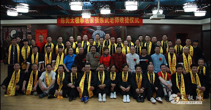 2015年5月2日晚上,陈氏太极拳名家张东武老师收徒仪式在郑州东武太极研修院经开区太极馆举行。 张东武老师,中国武术七段,国家一级拳师,国际太极拳年会"太极十杰"之一、中华太极拳杰出传承人、国际太极拳文化传播大使,1970年生于河南省温县,自幼习武,是中国陈家沟陈氏十九世、太极拳第十一代嫡宗传人陈正雷大师的入室弟子。他的功夫纯正,技术全面,对陈氏太极拳教学训练及实战技法有独到的见解。现任郑州东武太极研修院院长、法国张东武太极学院首席总监、香港陈式太极拳总会副主席、河南陈式太极拳协会副秘书长兼技术培训部主任、焦作市陈式太极拳协会副会长、河南东武太极文化传播有限公司总经理。 在拜师收徒仪式上,张东武为陈氏太极拳祖师上香,随后,24名弟子各自递呈拜师帖,并向恩师行拜师大礼。随后老弟子带领新入门弟子宣誓,由见证人代表刘洪奇先生致辞,接着嘉宾代表讲话,对新入门弟子表示祝贺并提出勉励;新入门弟子代表发言,表达了对恩师的感谢和传承太极的决心。然后张东武老师带新入门弟子向太极祖师行跪拜礼并向各位弟子讲解门规戒律,希望大家一起为陈氏太极拳的传承发展共同努力,最后张东武老师和嘉宾见证人以及新老弟子集体合影。 新入门弟子名单:王 征 杨 敏 范凤娥 王素芹 青木和平 吴建国 沙文山 王林广 罗从国 甄银辉 熊夫圣 马 超 张建康 李新射 王开祥 胡民杰 唐亚林 张 超 贾文盛 陈玉青 贺子斌 刘建军 王 雨 张剑波 |