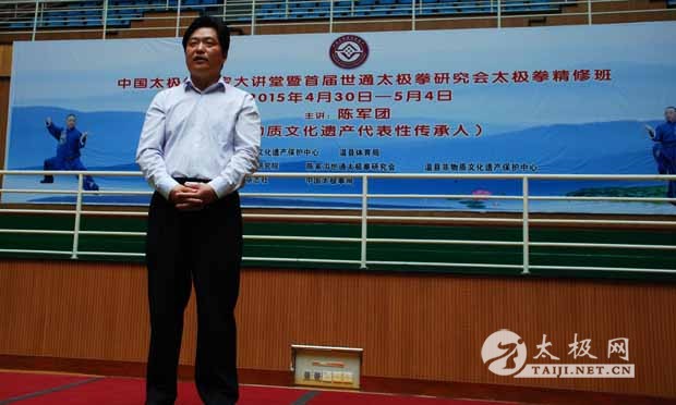 5月1日,中国太极拳名家大讲堂暨首届世通太极拳研究会太极拳精修班,在陈家沟太极拳国际交流中心正式开班。 来自西班牙、北京、香港、广东、浙江、陕西、新疆、等地的百余名国内外太极拳爱好者,齐聚陈家沟,聆听名家授课,提升太极技艺,感悟精髓所在。温县人民政府副县长张金太、温县体育局局长宋明军、陈家沟太极拳传承人陈军团等出席开班仪式。 副县长张金太在仪式上致辞说:陈家沟太极拳是中华民族优秀的传统文化、极具含金量的品牌,希望广大太极拳爱好者在太极拳发源地都能有所收获,在名师指点下拳艺进步,更希望广大的太极拳爱好者能关心和关注,帮助和支持陈家沟太极拳产业的发展,让陈家沟太极拳文化熠熠生辉,更好的造福人类健康事业。