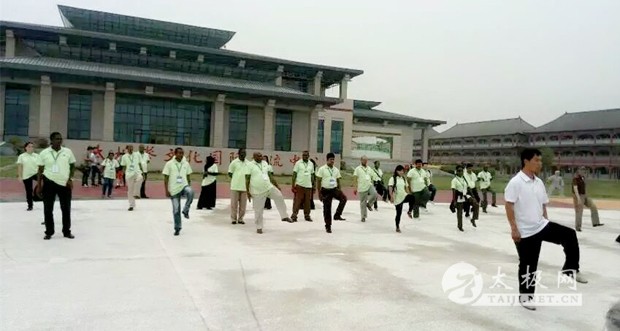 今天细雨纷纷,陈家沟太极拳国际交流中心却迎来了一群特殊的客人。 河南省工业大学代表,河南省外侨办代表,河南省教育汉语国际推广办代表以及河南省商务厅代表率十二个国家32人来陈家沟进行太极文化交流,温县县委常委、统战部长郑爱珍陪同他们参观陈家沟,并对他们讲述太极文化。 期间太极名家张福旺先生,为了欢迎他们专门带领他们练起了太极,而远道而来的客人们也津津有味有模有样地跟着学起来。相信这次陈家沟之行会让他们有所收获,陈家沟的村民也希望能多多迎接这样的客人,将太极文化传播到世界的每个角落。 |