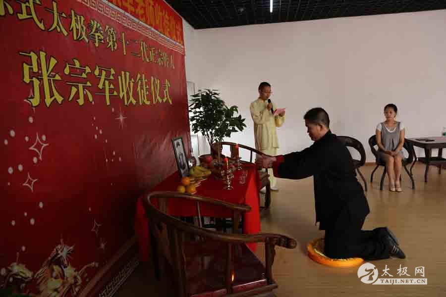 6月19日上午,陈氏太极拳第十二代正宗传人张宗军在山东省滕州市陈家沟太极拳滕州拳馆举行收徒仪式。来自河南平顶山舞钢市的李俊召自愿拜他为师,成为传承发扬本门陈氏太极拳队伍中的一员。这是他第十一个徒弟。 张宗军给陈王庭上香 据张宗军介绍,这次他收徒目的,是为了传承先师们遗留下来的传统太极文化,将太极事业代代相传、将传统陈氏太极拳发扬广大。让太极拳这一无穷的力量给更多的人带来幸福、带来安康,为社会文明作出贡献。 张宗军,陈氏太极拳第十二代正宗传人、中国当代太极拳名家,非物质文化遗产太极拳优秀传承人。陈家沟太极拳百杰人物;中华太极拳优秀传承人;陈家沟陈氏太极拳协会枣庄分会会长;枣庄市太极拳协会副秘书长;中央民族大学武术协会顾问;枣庄科技职业学院太极拳总教练;中国武术协会会员;中国武术段位六段;国家一级武术裁判;国家一级社会体育指导员。