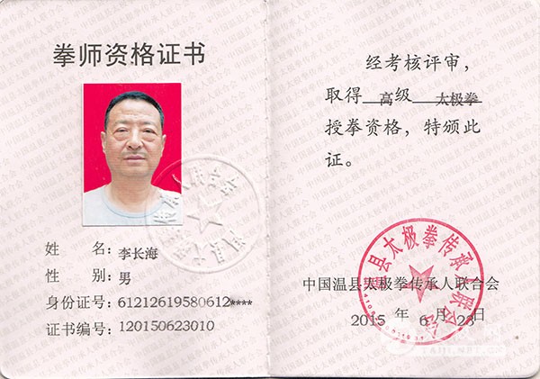 | 李长海,男,出生于1958年6月12日,陕西省潼关县人。自幼喜爱武术,学生时代曾跟随学校体育老师学习长拳,苦练基本功。近45年来不曾间断,在习练长拳期间,长期学习长拳,红拳,太极拳等套路,希望对中华武术在强身健体及搏击方面能够有较系统的认识、理解,然后再有一定的收获。然而,虽经刻苦学习,终因资质愚钝,无明师指点,致收获甚微,但此心从未动摇。后机缘巧遇,数年前 有幸遇见了我的恩师:陈氏太极拳小架第十一代正宗传人赵学法大师,承蒙老人家的关爱,在大师门下,从此常与众多师哥、师姐们长期学习,积极探讨,并有师父的细心指导,使本人对中华武学有了一定的认识和提高,坚定了本人继续深入学习、研究武学的积极性,并希望这一祖国的宝贵的文化遗产继续发扬光大,本人亦能成为其中一分子,尽点绵薄之力就很自豪了。 |