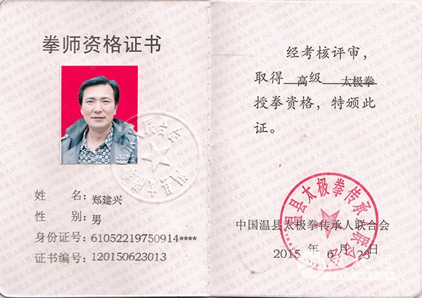 | 郑建兴,男,汉族,1975年9月岀生,大学文化程度,陕西省潼关县人。现任中共潼关县委宣传部副部长兼县委讲师团长。郑建兴自幼习练武术,立志以武建国,以文兴邦,故起名建兴。大学毕业后酷爱写作曾任新闻记者,领导秘书,逐步走上领导岗位。少年尚武,2012年拜赵学法大师习练陈式小架太极拳,推手、各类器械等。熟炼掌握太极刀、枪、棍、剑、春秋大刀及拐杖的套路和应用,尤擅长太极棍和春秋大刀。其拳风舒展大气、刚柔相济,尤如玉树临风,行云流水。近年来传授女儿、侄子、外甥等陈式小架太极拳,传播太极文化。 郑建兴拳照 |