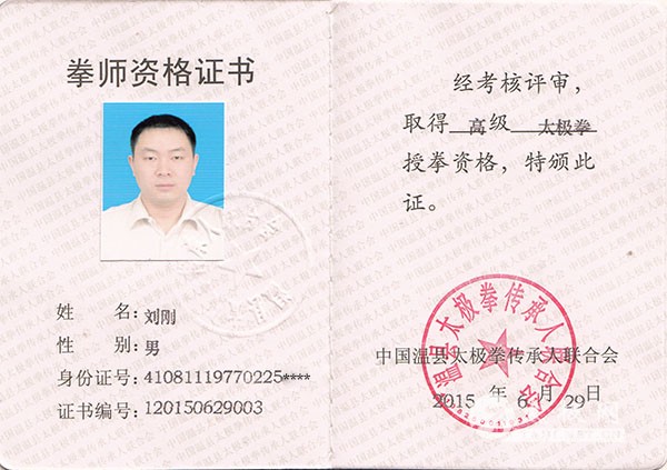 | 刘刚,男,生于1977年,河南焦作人,毕业于暨南大学。自幼喜欢武术,自1995年跟随太极拳大师张晓武先生练习陈氏太极拳,师恩厚爱,悉心指点,苦心修练,细心体会,逐步悟出陈式太极拳的奥妙和高深之处,先后在国际国内各级省市比赛中屡获大奖。苦心修炼陈氏太极之余,还积极传播太极拳,教授学生三百余人,为陈氏太极拳推广和发展做出自己的贡献。 |