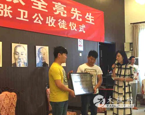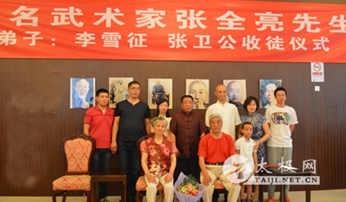 2015年6月28日,北京市大兴区隆重举行 “继续传统、尊师重道、爱国爱武,”传统拜师活动。著名武术家张全亮弟子李雪征、张卫公喜收门徒。 原中国武协主席张耀庭、李杰,原国家武术研究院副院长张山,著名武术文化学者余功保,北京市武术运动协会监事长张有峰、著名武术家李子鸣先生之女李秀人,著名武术家王培生之子王乃昭等来自全国各地的众多武术界嘉宾以及张全亮的传人弟子参加了本次活动。 李雪征、张卫公长期跟随张全亮习练传统武术,打下了坚实的传统武术功底,为张全亮优秀弟子,本次各收两名入室弟子,彰显张全亮一脉武学代代承传,后继有人。 张耀庭先生、余功保先生、李秀人女士以及大兴区体育局长于宝贵先生等发表讲话,高度评价张全亮先生德艺双馨、尊师重道,以及为推广传统武术做出的突出贡献。充分肯定拜师仪式体现了爱国爱武的正能量,是一堂生动的武德教育课。 拜师仪式延用中国传统仪式,张全亮率领大家向武林先人鞠躬致敬。并一一介绍了各位先辈的武术事迹。 大兴是吴氏太极拳重要基地,吴氏太极拳就从这里走向全国,北京鸣生亮武学研究会申请吴氏太极拳国家级非物质文化遗产获得批准,并由国家文化部颁发了非物质文化遗产铜牌,拜师仪式前非遗铜牌隆重亮相,展示鸣生亮武学研究会及广大武术界同仁继承中国优秀传统文化的决心和责任感。 非遗铜牌 鸣生亮武学研究会会长张全亮先生讲话 张全亮夫妇与弟子及再传弟子 |