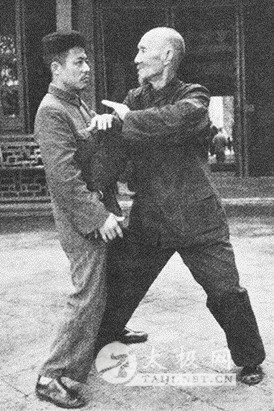 牛春明在杭州教人练太极拳 上世纪40年代,牛春明(右)和通背拳师马雨荪(中)、八卦拳师王佐诚(左)结为异姓兄弟。 每天清晨,77岁的孟宪民都会来到西湖边的六公园,带着一帮弟子在湖边的茶室门前练习太极拳。 “杭州大概很难找出比我练太极拳还久的人了。”孟宪民笑着说。8岁那年,他就开始在这里跟着外公练太极拳,一直坚持了69年,风雨无阻。 “我外公当年固定选在这个地方教拳,以前没有地砖,全是泥地,雨天一脚下去,脚印子深深的。前面几棵香樟树也被砍掉了,只有后面的露天茶室还在。”回忆起数十年前的习武旧事时,孟宪民颇有感慨。 孟宪民的外公名叫牛春明,这个名字,学太极拳的老人应该都知道。杭州流行的太极拳,绝大多数都是杨露禅传下来的杨氏太极拳,牛春明正是杨氏太极拳的第四代传人。 近日,当代中国出版社推出了《牛春明太极拳及珍藏手抄老谱》,书中不仅原版影印了其传家秘籍“珍藏手抄太极拳老谱”,还特别收录了牛春明当年亲自演练太极拳的纪录片《万年常青》残片。虽然年月已久,而且只剩下短短9分钟,但这段残片却是我国第一部也是迄今为止唯一一部为太极拳大师单人拍摄的纪录片电影。提起这本外公留下来的拳谱,孟宪民难掩激动,“这个本子是他生前最为宝贝的东西,走南闯北,即使经历战乱,什么东西都可以不带,唯独这个本子不可以丢下。小时候看他经常拿出来研读,但绝对不会给外人看上一眼,包括我也一样。直到小姨两年前交给我,我才有机会第一次读到里面的东西。” 两年前,王家卫的《一代宗师》曾讲述过民国武林的掌故,今年,陈凯歌的《道士下山》又掀起了一段和杭州有关的江湖风云。现在,我们听孟宪民讲讲他外公牛春明的故事,了解一下曾经在大家身边的一代宗师。 机缘巧合 牛春明成为杨氏太极拳第四代传人 在金庸小说《倚天屠龙记》里,张三丰开创了太极拳。而有历史可证的太极拳,源于清代陈王廷所创的陈氏太极拳。在电影《太极张三丰》中,李连杰打出的金刚捣椎、揽扎衣、海底翻花等动作,都是陈氏太极拳的打法。杨露禅的太极拳,也来自陈氏太极拳。 杨露禅是中国历史上有记载的第一个将太极武术发扬光大的人。有很多野史逸闻讲过杨露禅偷师学太极拳的传奇故事。讲杨露禅的影视剧也很多,根据宫白羽武侠小说《偷拳》改编的电影《神丐》,陈国富监制的功夫片《太极》,讲的就是杨露禅的故事,吴京主演的电视剧《太极宗师》,主角杨昱乾的人物原型也是杨露禅。 牛春明学杨氏太极拳有段故事。牛春明早年是个医生,但因幼时家境贫寒,年仅21岁就患上了肺痨,在当时几乎已是不治之症。1901年,杨氏太极拳的第二代宗师杨健侯(杨露禅的儿子)找牛春明治疗痔疮。治好之后,杨健侯看牛春明虽然医术高明,却时常咳血,便教了他太极健身之术。 练了太极拳的牛春明,果然没有再犯肺痨。因为天资聪慧,又勤奋好学,杨健侯非常器重牛春明,赐字“镜轩”,成为后来太极拳界著名的“杨门三轩”之首。 南下传太极拳 牛春明在浙江一待就是数十年 杨健侯去世前把杨氏太极拳的内家拳谱倾囊相授牛春明,让他一一抄录下来。同时,杨健侯还让牛春明拜儿子杨澄甫为师,正式成为杨氏太极拳第四代传人,也是第一个外姓入室弟子。 民国早期,太极拳只在北方流行,南方地区还是个空白。为了完成祖师杨健侯的遗训,杨氏太极拳诸弟子开始逐渐南迁传播拳法。1928年,牛春明来到杭州,一边开医馆,一边教人打太极拳,像西湖六公园、青年会、浙赣铁路局等地都是他常年教拳的根据地。 初来乍到,人们看他打拳动作缓慢,不免发出嘲笑。一位颇有功底的外家拳师,当面羞辱牛春明,“你这种拳有什么用场,软绵绵的,真是打老婆的拳。”第二天,这位拳师登门拜访,在客堂用茶时突然偷袭牛春明,牛春明身不离座,转腰随手一送,拳师随即向后跌出,撞翻桌子,茶具尽碎。被打败的拳师不甘心,第二天,又带来三位拳友,分列客堂四角,同时向牛春明发难。牛春明从容不迫,将四人一一弹出摔倒在地。四位壮汉尴尬地请教身材瘦弱的牛春明是如何做到左右逢源、以少胜多的,他淡淡一笑,“先听后发,快如闪电,有此薄技在身,故能受困而不惊,临危而不惧,得以化险为夷,绝处逢生。” 牛春明在浙江一待就是数十年。在杭州,提到牛春明,一直流传着“牛大力士”的称号。 晚年写拳谱 珍藏手抄老谱日前出版 解放后,进入暮年的牛春明仍然坚持教拳。跟随学拳的弟子中,有许多是身患慢性病而用药无效的市民,练拳后,很多都得到了缓解和康复。同时行医的牛春明不无感慨:“我虽是医生,给人治病却很少用药,是以拳为主。” 1960年,中央领导人陈云在杭州疗养,也跟着牛春明练太极拳。他先是找人为牛春明拍摄了演练太极拳的全套照片,后来又让中央新闻纪录片厂和浙江电影制片厂合拍了一部太极拳电影纪录片,名叫《万年常青》——目前只留下9分钟的残片。拍摄过程中,好奇的摄影师,向当时已经79岁高龄的牛春明提出,是否可以露一手太极真功夫?于是,牛春明命人取来一个鸟笼,打开笼门,摊开手掌托住鸟雀并引出笼外。结果,任凭小鸟双翅拍打,却怎么也飞不出他的掌心。旁观者无不拍手称奇。 牛春明在西湖边教人习拳长达半个多世纪。在此期间,孟宪民和牛春明的另一位弟子陈海鹰,开始跟牛春明一起编写《牛春明太极