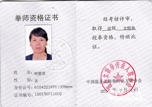 1984-1997在三原武校师从向银才老师习练长拳,器械。(期间95年获全国双刀冠军)。 1997-2011年在省体校培训学习。 2011至今一直师从太极十二代传人刘明杰老师。 2008-2011年期间曾多次受王二平老师和陈正雷老师指点太极拳。 2010年获香港国际武术节陈式太极冠军,剑亚军。 2011年获全国传统武术比赛陈式太极24式冠军。 2013年被授予国家武术六段(陈式太极拳)。 2013年获江苏省武协举办的武术交流大赛太极刀,拳冠军。 |