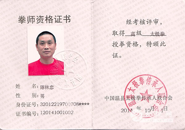 比赛成绩: 2010年5月参加江苏雨花石杯武术大赛获得太极拳、太极剑冠军。 2010年10月参加江苏省武术大赛获得冠军。 2011年6月参加丁山杯泰州国际武术交流大赛获得太极拳及太极剑冠军。 2011年11月南京荣氏杯首届武术精英排名赛获得第一名。 2014年8月江苏第二届夏季奥林匹克运动会“弘武杯”太极拳表演总决赛获得太极拳冠军,太极剑冠军。 为了让更多的人分享健康、快乐,陈林忠不仅长期坚持对身边的太极爱好者进行教学指导,并且先后对江苏南京多家企业、政府机关、事业单位进行太极拳培训。