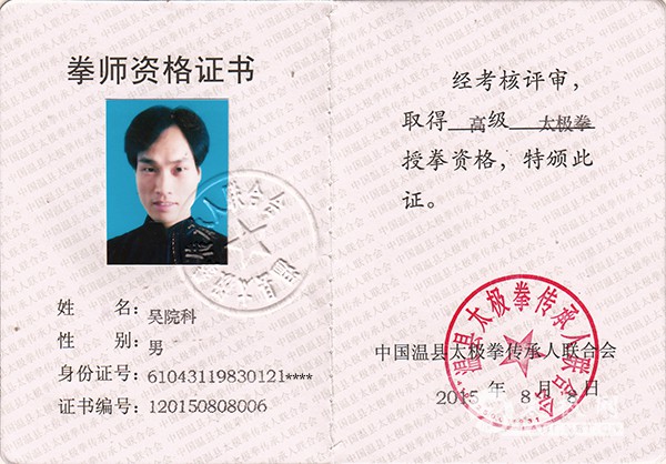 1 、2002 年5 月,拜陕西马虹太极拳法研究会秘书长杨智高先生为师,学习陈式太极拳; 2 、2004 年10 月,创办黑龙江科技大学陈式太极拳研习班,至毕业前夕,传授学生、教师、学院领导及外籍教师达百人之多; 3 、2005 年11 月,任黑龙江科技大学第四届大学生社团联合会武术协会副会长兼总教练; 4 、2006 年5 月,前往石家庄市拜访国际太极拳大师、陈氏太极拳第H 代传人马虹先生,并得以指点; 5 、2007 年6 月,荣获黑龙江省第16 届大学生运动会武术比赛男子甲组太极拳第1 名;同年8月,参加马虹大师国际陈氏太极拳训练营在哈尔滨的课程学习; 6 、2010 年10 月,创办七台河市陈式太极拳研习班,面向全七台河地区进行陈式太极拳初级教学和中级培训,目前已培训7 期,’学拳人员涉及当地公安、银行、税务、电力、私企及公务员等各行各业; 7 、现居黑龙江省七台河市桃山区,致力于陈式太极拳在七台河地区的传播与推广工作。 |