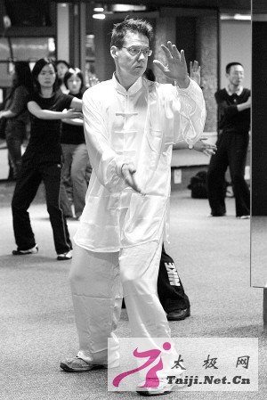 当中国太极的美名远扬时,越来越多的外国人爱上了它,例如这位来自美国的JOE(乔)。 舒适堡健身中心的操房里,教练周兴正在给学员们上太极课。人群中,金发碧眼的洋弟子JOE很惹眼。只见他穿着和教练一样的专业练功服,在摇头晃脑地做着准备运动。本以为他的动作会比别人生硬些,可随着音乐响起,他表现出的功力非同一般。连贯的动作,柔中带刚,几个难度较高的招式也被他轻描淡写就使了出来,颇具大师风采。一小时的课程眨眼就过去了,同班同学由衷地对JOE表示赞赏,这让JOE很得意。 三年前,他从美国来到中国,选择在美丽的杭州落户,成为了杭四中的英语老师。刚到杭州时,身边的一切对他来说都那么新鲜,杭州的风景、杭州的小吃,每一样都让他非常喜欢。不过,吸引力最大的还是中国的太极。 JOE第一次看见太极是在上课的路上,几个爱好者正在街边练习,他马上就来了兴趣。当天晚上,就买了不少太极教学的光碟,开始了自学之路。 现在回头看去,JOE认为“那都是小打小闹的,纯粹是玩的,刚开始的时候,感觉自己的身子硬得像根铁条一样,经常做一个动作还把关节给拗了呢!”话虽如此,可一段时间后,他还是明显感觉到了效果,“最主要表现在协调能力和柔韧度上,而且练完心情也更加愉快了!” 去年,JOE觉得自学的方式已经满足不了他的需要,刚好学校里的课程也比较稳定,于是在朋友介绍下,他走进了健身房正式拜师。几堂课听下来,JOE觉得有教练教比自己摸索收获更大,进步更快,就练得更有动力了。 现在,他坚持每天早晚一练,不仅很多人一起上的大课喜欢参加,有时还请教练单独给他“开小灶”。通过近一年的教学,教练周兴对自己的这个洋弟子很满意,“他再练练就能去参加武术比赛了呢!”师傅如此看好,徒弟当然也是信心十足。不过,他表示自己最大的愿望还是能将身体越练越年轻。
