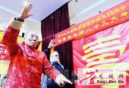 据介绍,作为杨氏太极拳第五代传人,89岁的林老在同辈中造诣颇深。目前,他任四川太极拳推手研究会会长、中国永年国际太极拳联谊会副理事长,收有入室弟子数百人,徒子徒孙上万。为恭贺他寿辰,上百弟子特地从全国各地赶来,峨眉和青城等五六个武术门派的代表也赶来参加,“这是四川每年一度的武林盛事”。据了解,林老与奥运渊源颇深,中国武协曾推荐他为2008年奥运会太极功夫形象大使。