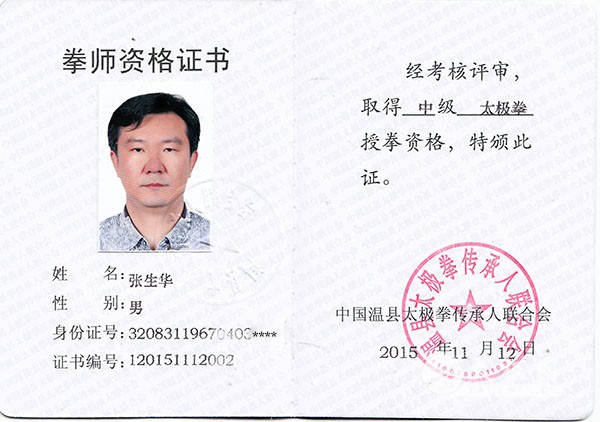2009年 习练陈式太极拳大架一路 2010年 拜陈氏第十二代传人王大昭为师,习练陈氏太极拳小架、108、陈氏单刀、陈氏单剑 2010年 创办昆山萃华太极武术馆,任馆长兼教练员,为陈氏太极拳小架在江南昆山发扬光大作出重大贡献 2011年 参加第六届。焦作国际太极拳比赛获银牌1枚 2015年 参加第八届。焦作国际太极拳比赛获银牌1枚 拳照 |
