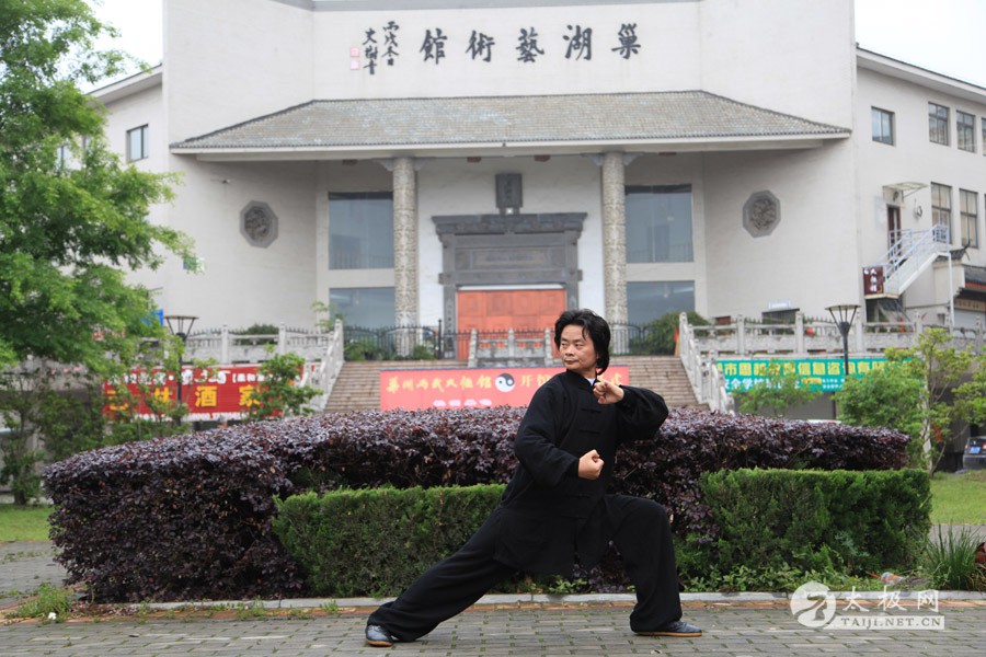 翟亚兵老师英姿 初识太极,师出名门 谈到自己的太极之路翟亚兵说由于他本人自幼体弱多病,1994年在江阴工作时偶然练习太极拳,坚持一段时间的练习后发现身体状况大有好转。并在“连云港全国太极拳交流赛”上获得陈式太极青年组三等奖。2004年他回到自己的家乡巢湖市槐林镇创业,并坚持太极拳的练习,在这期间又接触到杨氏和陈氏太极拳,2007年12月有幸随武式太极拳人第五代传人、中国武当百杰、中国武术七段、太极名家孙建国先生学拳,经孙先生严格考察后,翟亚兵成为孙建国先生的入室弟子。而他的拳技也在与日俱增,2012年在福州“第六届南少林华夏武术大赛”获得拳械银牌;2013年在“首届厦门武术精英电视赛”上夺取一金、二银并获得组委会颁发的武术发展贡献奖;2014年参加“首届武式太极拳传承论坛峰会”  在首届国际太极拳网络视频大赛中荣获2015“最美太极人”称号
