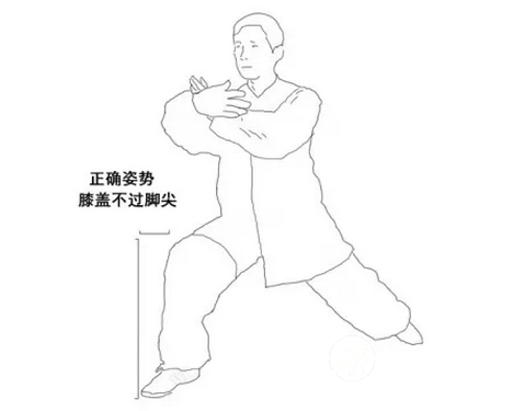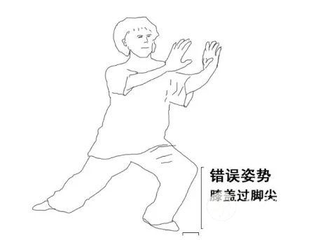 太极的姿势不正确,会给膝盖带来很大的压力,看下图,