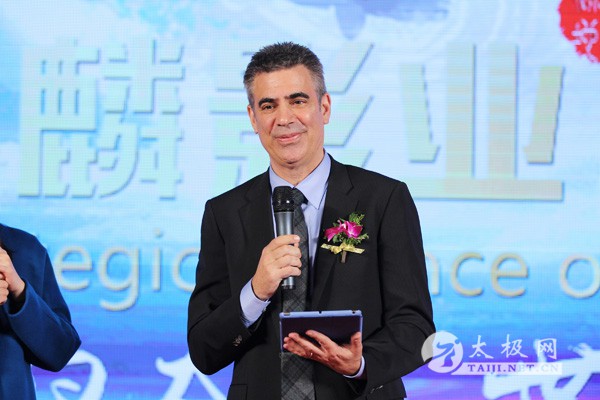 《龙之诞生》电影制片人麦克·伦敦在新闻发布会上致辞
