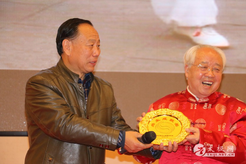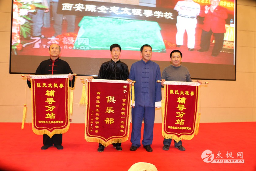 陈全忠大师代表研究会,向20年来为太极拳的普及发展做出重要贡献的弟子,颁发了太极拳终身传承奖。陈西鹏会长为新入会的辅导站颁发了锦旗。