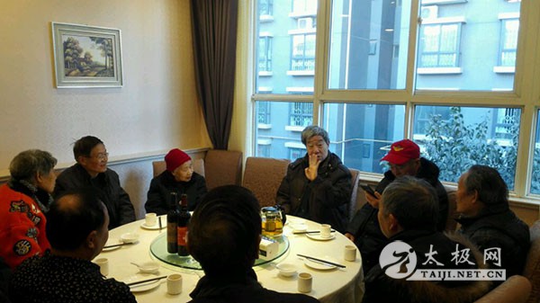 热烈祝贺陈子明太极拳研究会特邀西安部分太极拳名家新春茶话会圆满成功 国运昌,太极兴!元月24日,陈子明太极拳研究会在省、市武协领导和西安太极拳总会的关怀、支持下,邀请西安部分太极拳名家齐聚一堂,举行了2016新春茶话会。市武协副主席、西安太极拳总会秘书长刘永强先生应邀到会并做了即席讲话。 与会的太极拳名家有:陈王庭嫡系十世孙、陈子明太极拳研究会名誉会长陈玉璋先生,陈金鳌大师侄女陈凤英女士,西安太极拳总会顾问司马国柱先生,西安太极拳总会名誉会长李树发先生,以及陈家沟的黄喜梅女士,西安同学会会长、马虹大师之高足李刚强先生,陈立清大师之子原定宇先生,还有陈子明太极拳研究会主要负责人职宝贵,柯鸿信,苗玉阵,希伟,王永林,蔡怡生等也参加了茶话会。 会议由陈子明太极拳研究会秘书长张纪伟主持,会长王胜利代表全会作了讲话:首先向到会的各位老拳师和武协领导拜早年,顺祝他们家庭和睦、工作顺利、身体健康、吉祥如意!并汇报了研究会一年来的工作:陈子明太极拳研究会2015年是大发展的一年,先后在河南南阳地区成立了四个分会,现在北京分会和温州分会也在筹备中,光河南分会会员就达到了数百人,且今年咸阳分会在一五年八月份举办的第八届焦作国际太极拳武术大会上获得了十二金、十四银、十七铜的好成绩。在谈到今后的发展,王老师也提出了我们西安太极拳的一些现状和未来的发展。 谈到老架和小架时强调指出"小架系有老架神明变化而来"。陈有本是当时新架(现今小架)的开辟者,陈长兴是陈王庭老架(现今大架)的继承者和发展者。 与会的老拳师们也畅所欲言,加了进来谈出了自己的心得,献出了自己的经验,为西安太极拳未来的发展勾画出了宏伟蓝图,看他们一个个鹤发童颜、精神矍铄,虽壮士暮年却雄心未泯,完全沉浸在传播和发展太极拳的幸福中,他们纷纷表示‘让自己的晚年在太极拳的推广和传播中焕发青春,造福人民,造福大众’。 最后茶花会在喜悦的气氛中圆满结束,部分老拳师在会后还进行了拳术交流和展示。 |