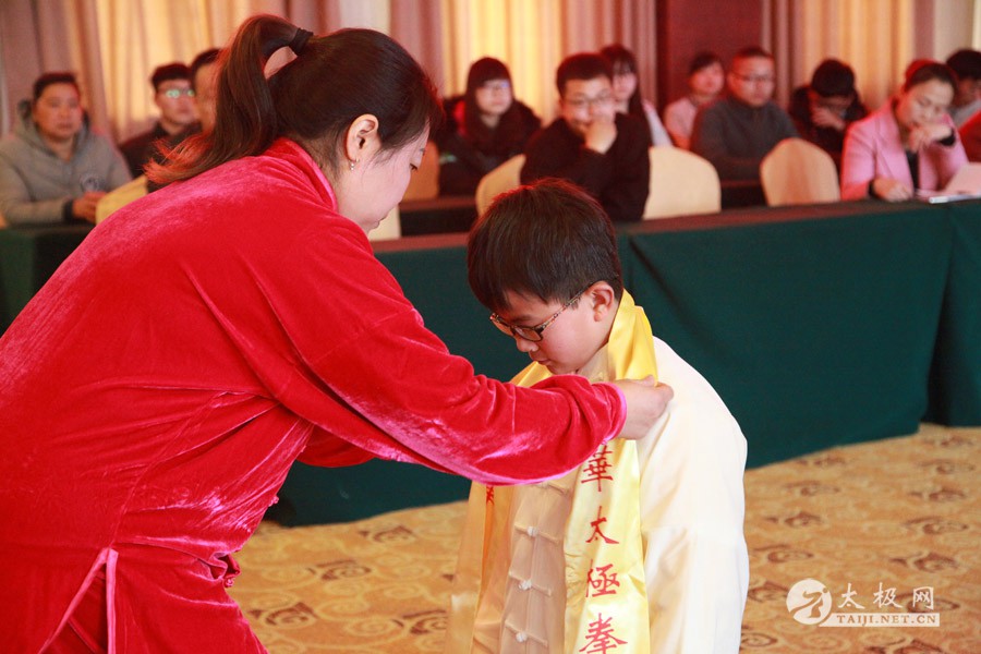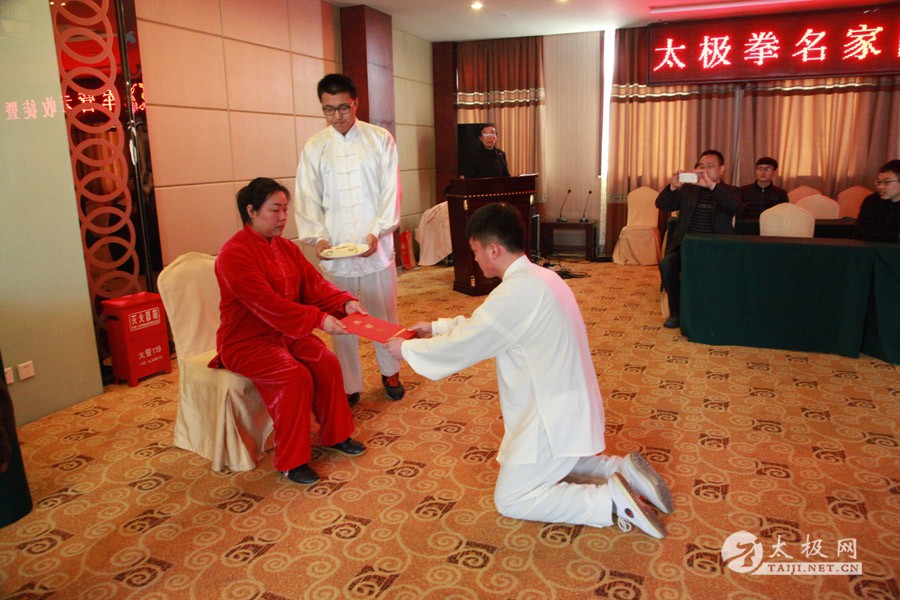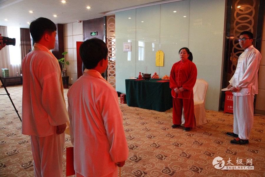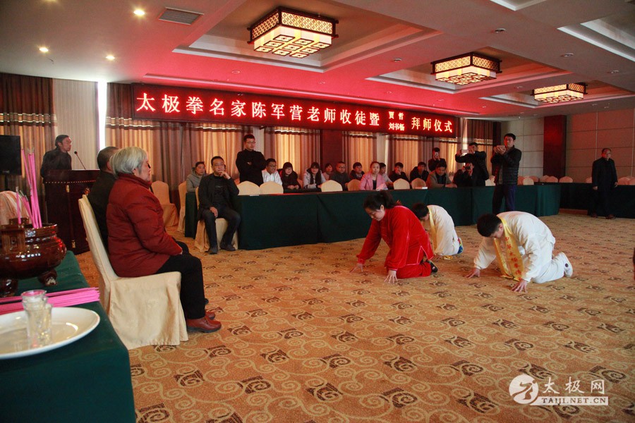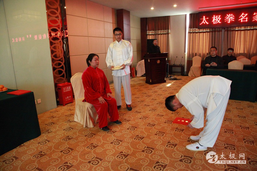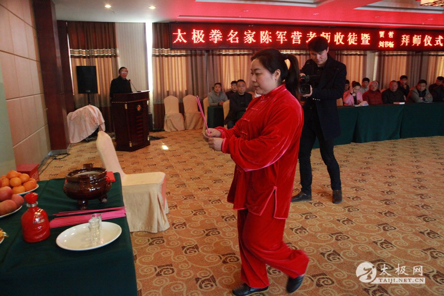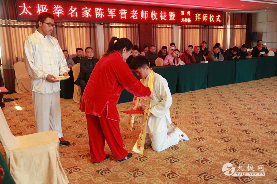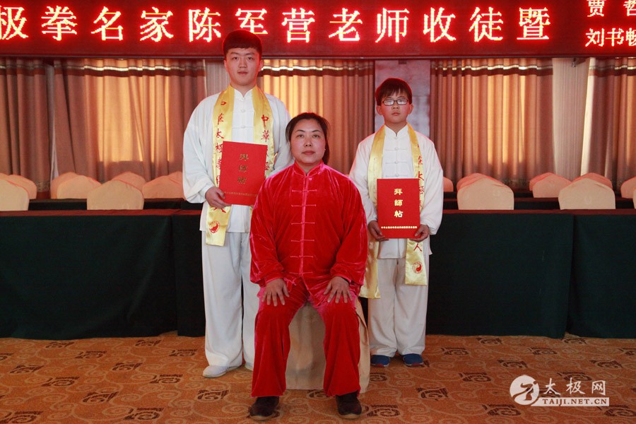 2016年2月24日,国际太极拳大师陈世通之女、太极拳名家陈军营收徒仪式于温县陈家沟王庭大酒店举行,来自河南信阳的刘书畅和温县的贾哲拜入陈军营老师门下,正式成为陈式太极拳第十二代传承人。 陈军营老师的开山收徒仪式受到了陈家沟家族理事会的充分认可及温县太极拳传承人联合会的大力支持。在理事会成员代表的主持下,陈军营老师先向陈氏太极拳列祖列宗上香敬酒,宣告开山收徒。随后两位新入门弟子向师父递交拜师帖,并行叩拜大礼,师父允纳回帖后亲自为弟子披挂“中华太极拳传承人”绶带,二位弟子再向陈氏太极拳列祖列宗行叩首礼,在陈军营老师的带领下,二位弟子又向师爷陈世通大师行叩首礼,正式成为陈氏太极拳传承人。二位弟子纷纷表示将谨遵师训,为传承陈家沟太极拳文化而努力。 仪式谨遵陈氏家族传统拜师礼仪,充分彰显了太极拳文化传承的规范性,太极拳传承人联合会主席刘洪奇先生在仪式上发表讲话,对陈军营老师在传承太极拳文化上的一丝不苟与孜孜不倦表示敬佩,并祝愿陈军营老师在传承和发展太极拳事业上走的更远。 |
