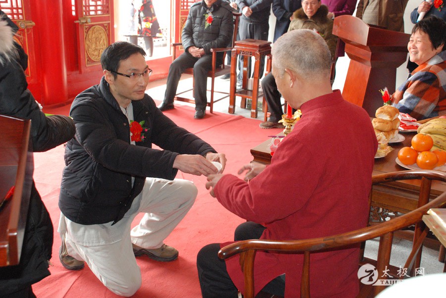 2016年2月28日,尊古太极米广盛先生收徒仪式于温县庆州武院举行,来自浙江象山的周鸿杰拜入其门下,成为尊古太极的一份子。仪式由温县庆州武院院长、尊古太极国际联合会主席陈有华先生主持,出席仪式的嘉宾有太极拳传承人联合会秘书长朱江先生,太极拳杂志主编王娟女士,太极拳名家陈有京、赵乐意先生。 仪式遵循传统,庄重严谨。米广盛先生先首先带领准入门弟子祭祖上香,随后准入门弟子周鸿杰向师父递交拜师帖,并向师父师母敬茶。见证人朱江先生征得弟子拜师意愿和师父的收徒意愿后,见证人和师父签字允纳。准入门弟子周鸿杰向师父行三叩九拜的拜师大礼后,接受师父训诫。师父米广盛语重心长地向新弟子讲解门规戒律,并嘱咐其用心传承尊古太极,随后向其颁发中华太极拳传承人证书,宣布其正式成为陈式太极拳第十三代传承人。到场嘉宾纷纷鼓掌为尊古太极再续传承表示祝贺。 米广盛,生于1953年,河南温县黄庄镇米庄村人,1965年师从陈庆州大师习陈式太极拳。曾荣获铁岭市金麟杯太极拳表演一等奖,太极球表演奖。曾在福建、江西、浙江、广东等地授拳,学员逾千人。 现为中国陈家沟太极拳推广中心教练,中国温县庆州武院教练,国家一级社会体育指导员,武术六段。 周鸿杰,跟随米广盛老师习练太极拳,2011年9月学习尊古太极老架一路,2012年6月学习太极球,2013年6月学习大杆,行功棒,2015年5月学习推手初级。2015年5月参加第二届“尊古太极”精英会,太极球个人二等奖。 |