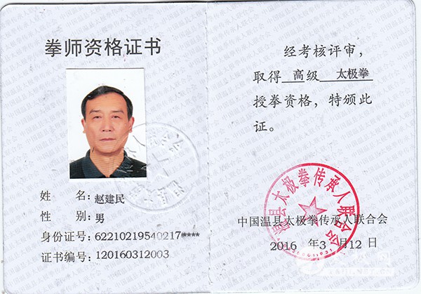 赵建民,男,生于1954 年4 月,山东济南人。中国武术协会会员,甘肃省太极拳协会顾问.从小热爱武术,少年时随父辈习武,七十年代跟随名师习练通备拳、峻恫拳,参加民间摔跤等武术活动1996 开始习练健身气功,2005 一2009 期间撰写并发表《 丹田呼气解除疲累》 、《 明镜周天功》 等理论文章获得中国气功杂志一等奖、二等奖。 近年师从陈式太极拳第十二代传人刘建华习练太极拳,并多次参加国内外太极拳大赛,2010 年参加陈式心意混元太极内功心法高级培训班;2014 年参加甘肃省武术比赛获得男子E 组太极拳二等奖;2015 年获得国际网络视频大赛二等奖。组织开展群众太极拳活动弘扬中华传统太极拳,为太极拳事业做出了突出贡献。 |