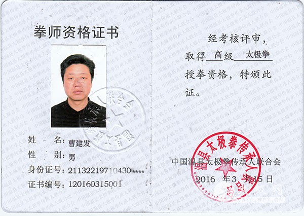 曹建发,生于1971年。2009年随陈启亮学习陈式太极拳小架。2010年随陈照森大师学习太极拳器械。2011年跟随张东武老师系统的学习了陈式太极拳老架一路,二路,新架一路,二路以及炮锤。 2014年——2015年在重庆太极馆任教。 曹建发拳照 |