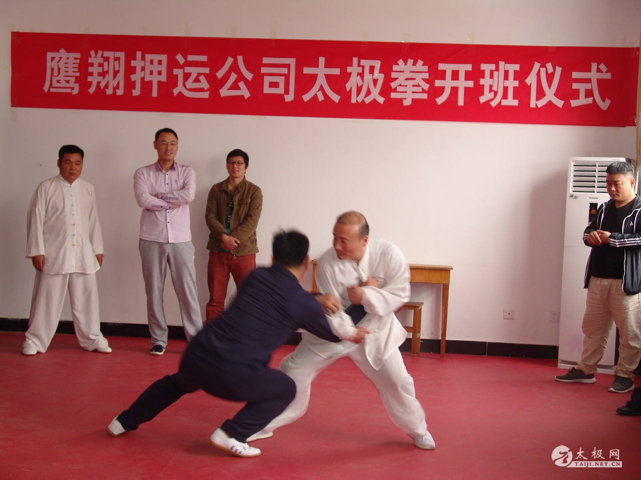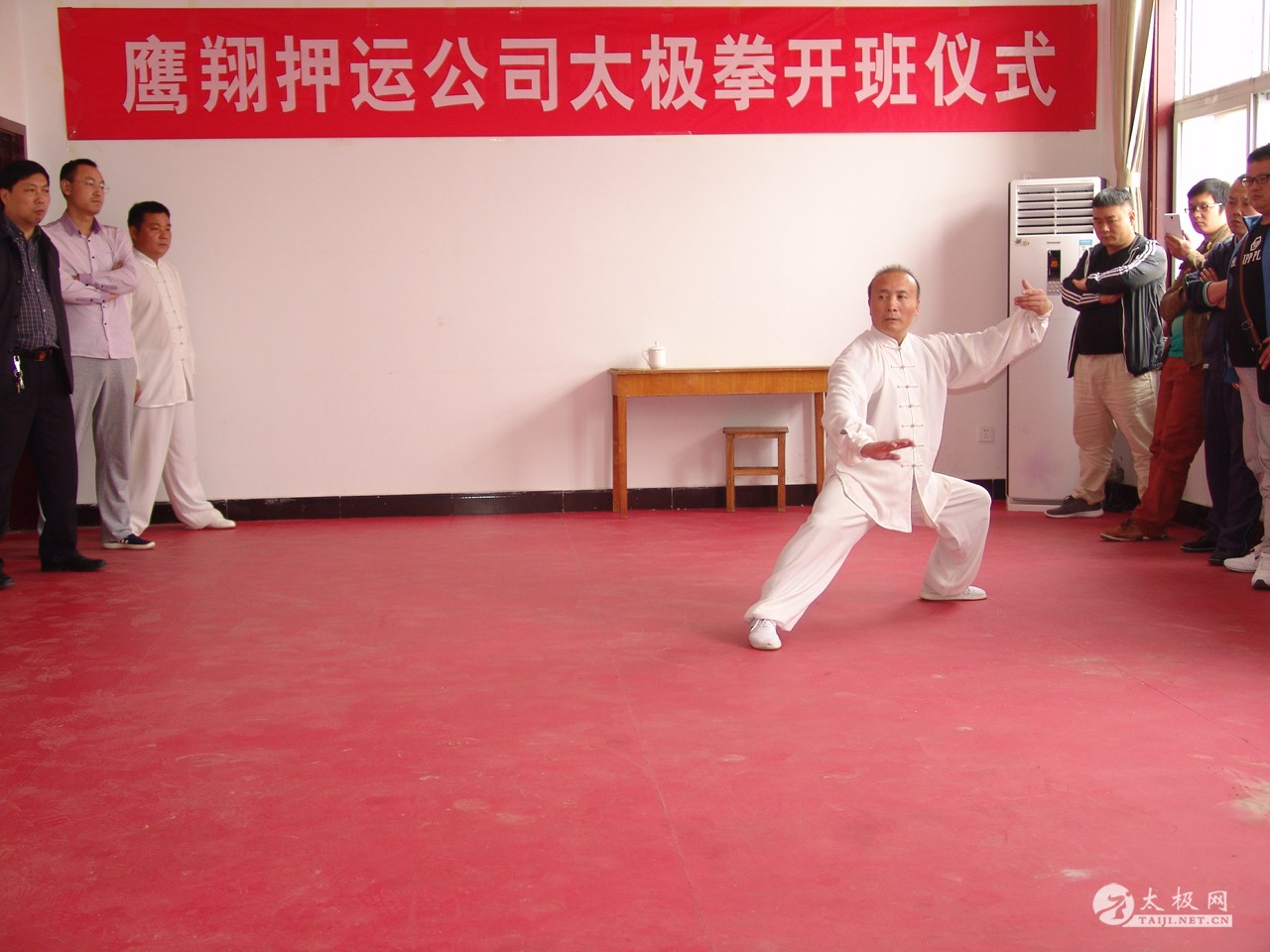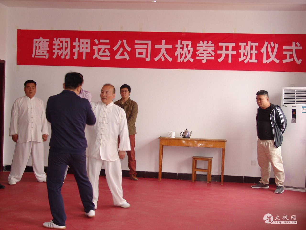 2016年4月17日上午,风和日丽,春意融融。在平顶山鹰翔押运公司有关领导的支持及董丰电太极团队平顶山弟子的努力下,平顶山鹰翔押运公司太极拳培训班开班仪式如期举行! 首先平顶山鹰翔押运公司杨总进行开班仪式的讲话,鼓励员工在董丰电老师的带领下学好太极、练好太极、宣扬太极文化。随后团队负责人董丰电先生,对押运公司领导的支持表示感谢,对学员们学习太极拳的积极性表示赞赏和鼓励!紧接着董丰电老师给学员们具体讲解了什么是太极拳,太极拳的由来及发展、习练太极拳的意义及如何才能练好太极拳等! 讲话结束后,董丰电老师给学员们展示了一套陈式太极拳综合套路。学员们从董老师刚柔相济、快慢相间、穿越蹦跳、闪转腾挪的拳路展示中领悟到太极拳的深厚内涵及迷人魅力! 在最后的互动环节中,董丰电老师与弟子进行了太极推手,太极擒拿,太极散手等有关实用性展示,让学员们进一步了解到,练习太极拳不仅能健身,还可用以实战! 通过本次开班仪式一系列活动的开展,再次提高了学员们学习太极拳的兴趣,增强了学好太极拳的信心! |