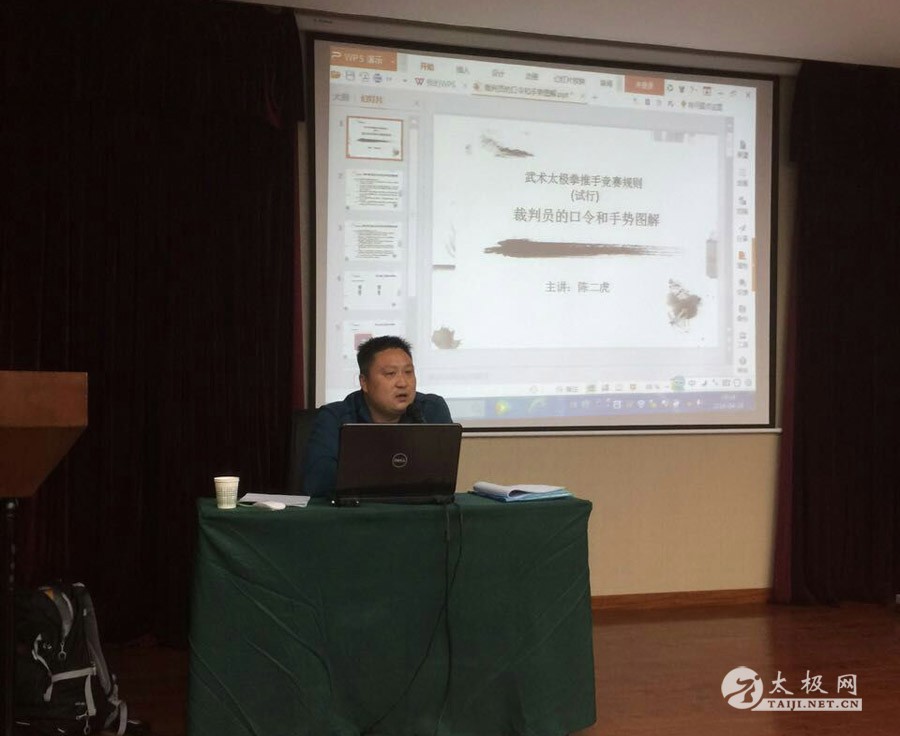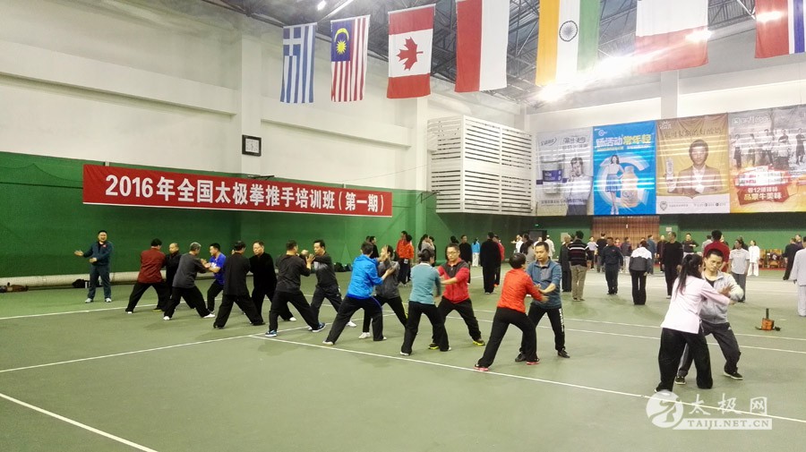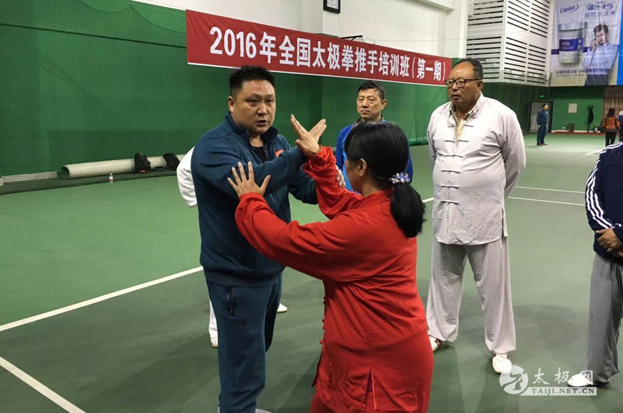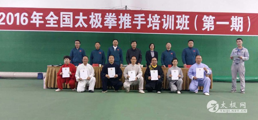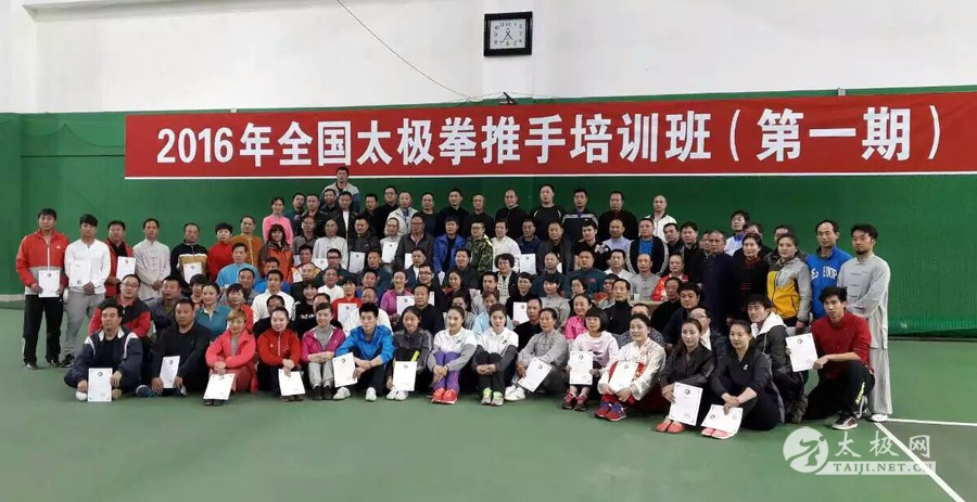 | 2016全国太极拳推手培训班(第一期)在4月16日至19日在内蒙古呼和浩特市举办,经过四天十一个单元的课程,来自各省和大学院校一百二十位学员,通过理论、技术、裁判手势等课程的学习,大家圆满的通过了考核。 本次参加培训班的有中国武协副主席何青龙先生,国家武术运动管理中心社会部部长刘志华女士,担任本次培训班的教练有北体黄康辉、上体谢业雷、邯郸学院田金龙、北京东城区体育局刘伟,河南陈家沟陈二虎老师。 |